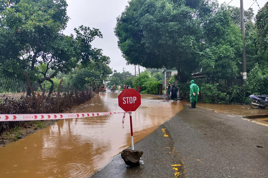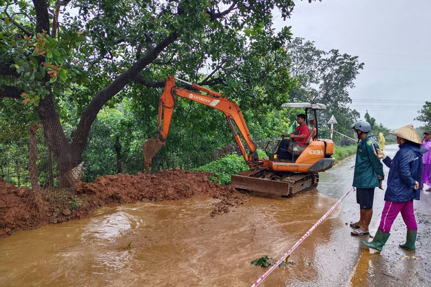 Trước đó, cơn mưa lớn kéo dài từ đêm 21-6 đến sáng ngày 22-6-2024 đã làm đoạn đường này ngập sâu từ 0,4m đến 0,7m với chiều dài khoảng 100m, gây ách tắc giao thông, nhiều người dân lưu thông trên tuyến đường bằng xe máy đã té ngã do bị sụp ổ gà. Để kịp thời giải quyết tình trạng nước ngập, đảm bảo an toàn cho người dân và các phương tiện khi tham gia giao thông, UBND huyện đã chỉ đạo Công an huyện đặt biển báo, phân luồng, hướng dẫn người dân lưu thông; Phòng Kinh tế hạ tầng huyện căng dây, đặt biển báo, múc rãnh thoát nước, đổ đá lấp ổ gà và nâng cao mặt đường tạm thời, lắp camera giám sát…/.
