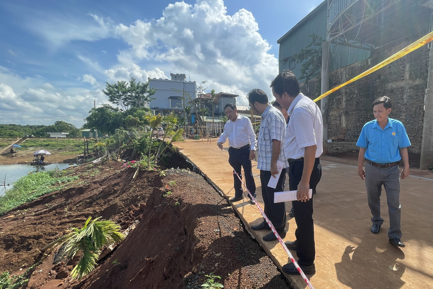 Tại điểm khảo sát, Chủ tịch UBND huyện Vũ Văn Mười đã kiểm tra thực tế các điểm sạt lở, đánh giá nguyên nhân và bàn các phương án khắc phục, qua kiểm tra hiện trạng đoạn đường bên phải tuyến phía giáp mặt nước bờ hồ bị sạt lở chiều dài khoảng 50 mét, sâu khoảng 3 đến 4 mét tạo thành hàm ếch sâu vào bên trong dưới mặt đường từ 1,5 đến 2 mét.