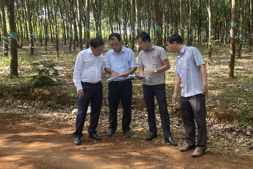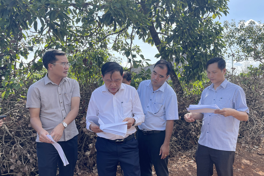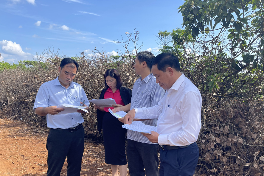 Chủ tịch UBND huyện Vũ Văn Mười cùng lãnh đạo các phòng chuyên môn, UBND xã Đăk Nhau khảo sát thực địa các danh mục đầu tư xây dựng đã được phê duyệt theo Kế hoạch 147 ngày 23/4/2024 của UBND tỉnh
