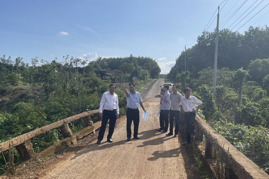 Tại các điểm, đoàn đã khảo sát thực địa các danh mục dự án công trình đường giao thông nông thôn; công trình thủy lợi, cầu; công trình điện đã được phê duyệt đầu tư theo Kế hoạch số 147 ngày 23/4/2024 của UBND tỉnh.