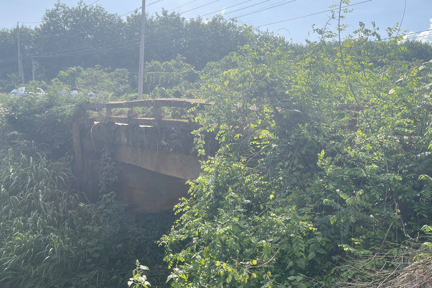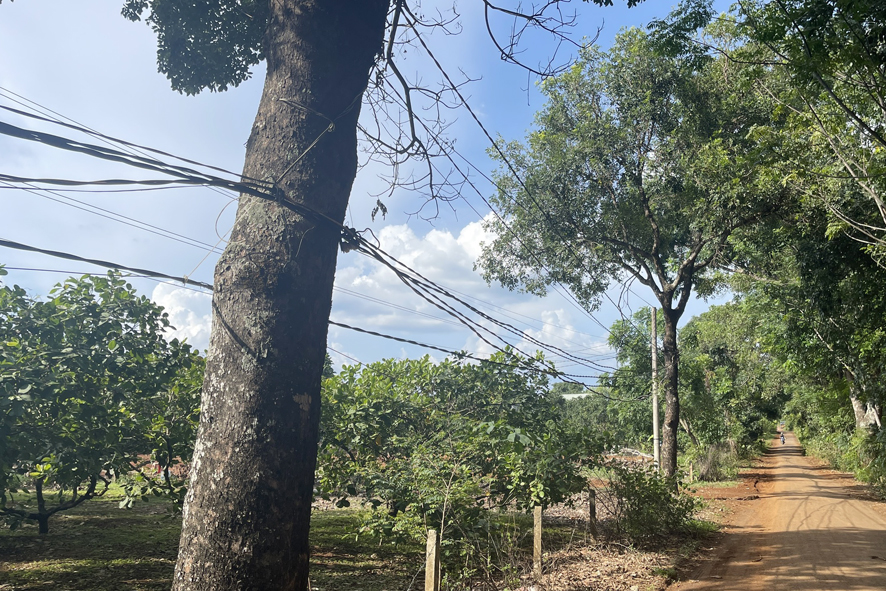 Hiện trạng cầu Đak La, thôn Đak La xuống cấp, lan can hư hỏng và hệ thống đường điện do các hộ dân tự kéo đang mắc nhờ vào cây trồng bên đường