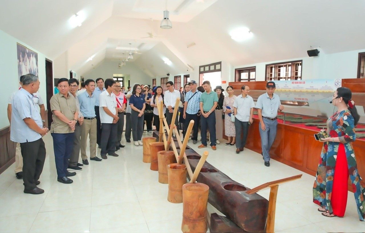 Đoàn tham quan khu trưng bày không gian văn hoá người dân tộc S’Tiêng.
