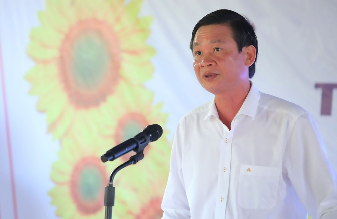 Nhà Báo Nguyễn Thị Minh Nhâm – TUV, GĐ-Tổng Biên tập BPTV; Đ/c Phan Minh Bảy – UVBTV, Chỉ Huy trưởng BCHQS huyện trao biểu trưng nhà tình thương cho người được thụ hưởng.