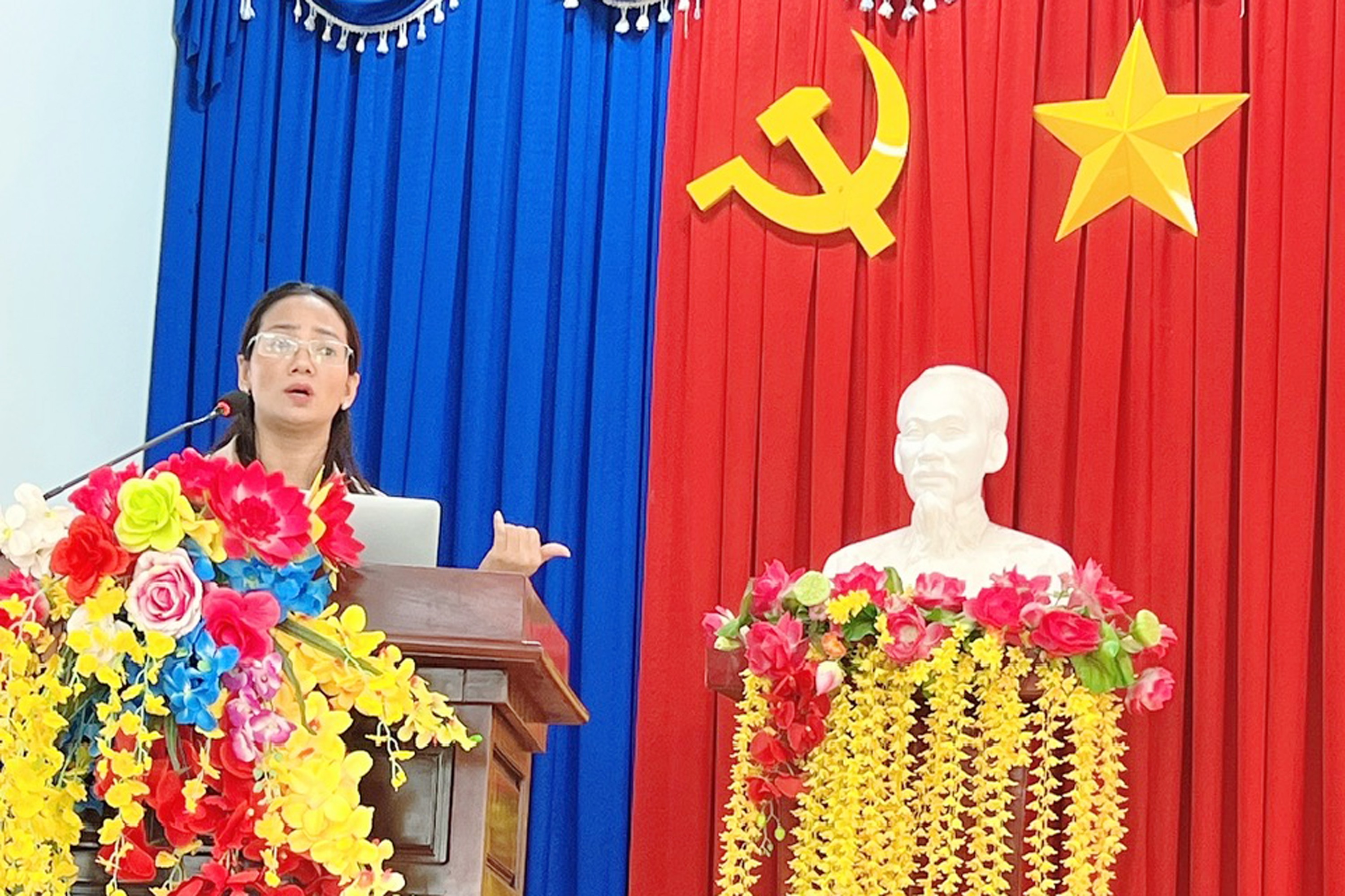 Bà Phan Thị Vân Phó Giám đốc Trung tâm Trợ giúp pháp lý tỉnh Bình Phước phổ biến giáo dục pháp luật