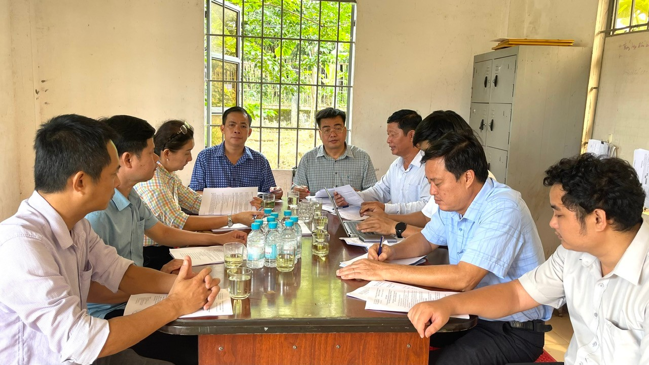 Hội đồng họp đánh giá thực trạng công trình hồ chứa nước.