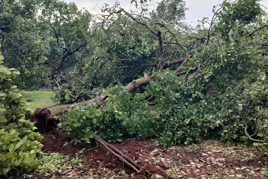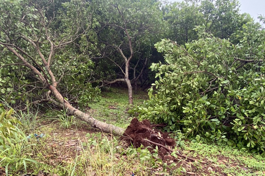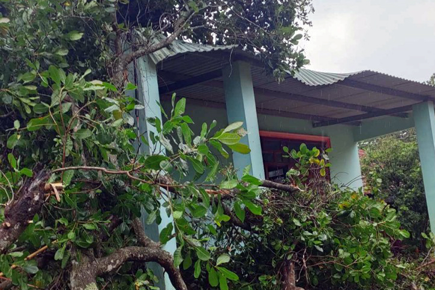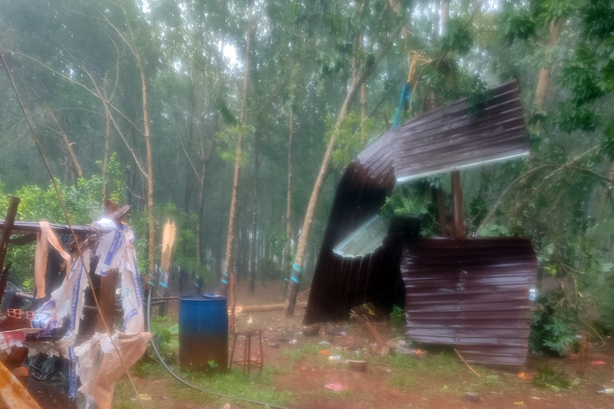 Theo đó, một cơn mưa lớn, kèm theo lốc xoáy kéo dài khoảng hơn 01 giờ đã làm 01 căn nhà bị tốc mái hoàn toàn và làm bật gốc, gãy đổ gần 6ha cây điều có độ tuổi từ 10 năm tuổi trở lên.