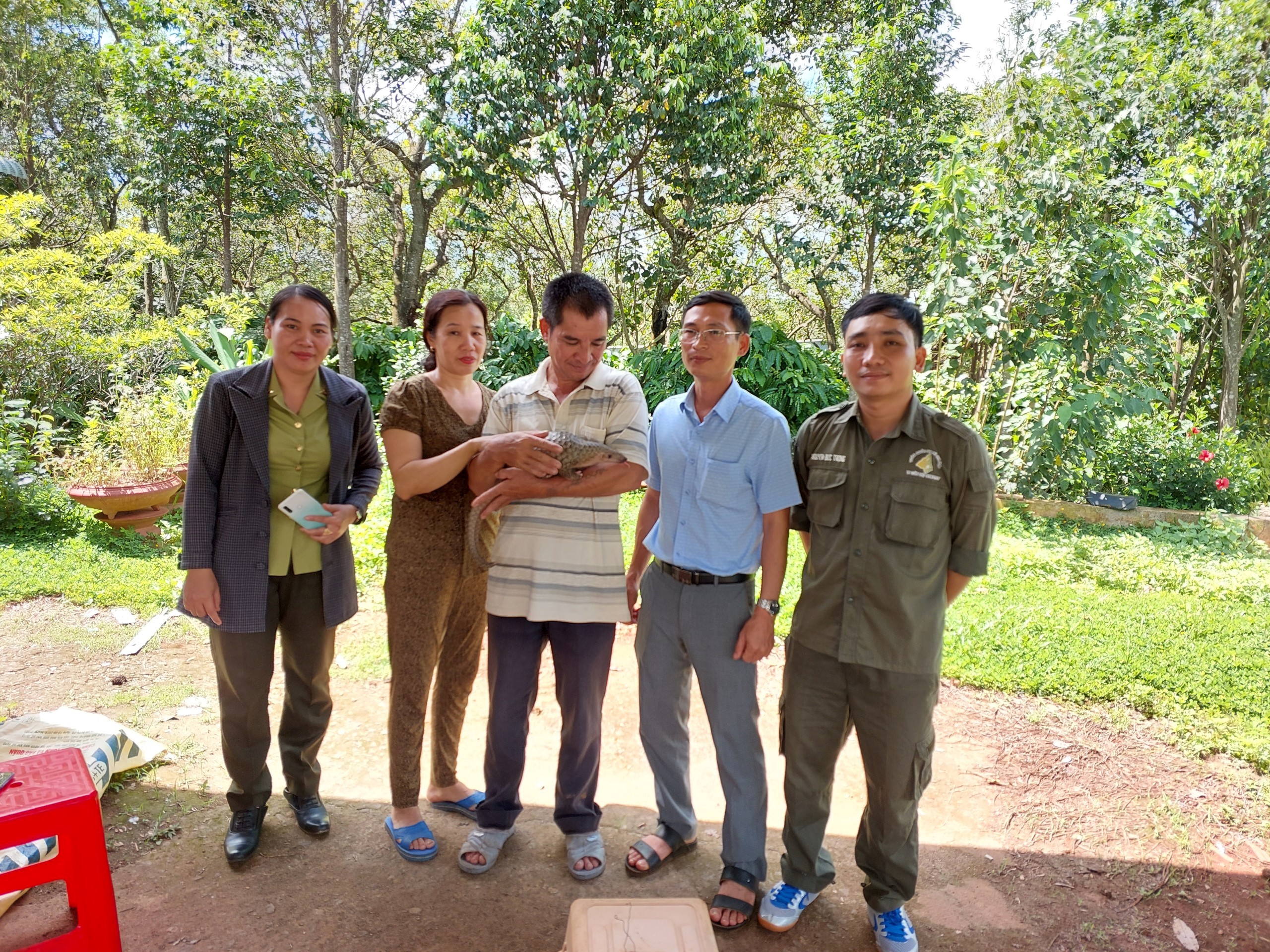 Qua trao đổi Đoàn công tác, ông Thới cho biết: “Vào khoảng tháng 6 năm 2022, ông đi làm rẫy ở Kom Tum, thì vô tình phát hiện 01 con Tê tê này trên rẫy, thấy con Tê tê còn rất nhỏ, có thể trạng yếu, sợ nó bị chết nên ông đã mang về chăm sóc, đến nay được khoảng 01 năm. Tuy nhiên đến nay, nhận thấy con Tê tê này ngày càng lớn thì môi trường tự nhiên mới phù hợp nhất để nó phát triển (tập tính kiếm ăn vào ban đêm ngoài tự nhiên). Đã có lần ông mang “nó” vào rừng gần rẫy để thả đi, nhưng vẫn không yên tâm nên đã mang về. Sau khi tìm hiểu, ông đã liên hệ và thông báo đến cơ quan chức năng để giao nộp với mong muốn cá thể Tê tê được được bảo vệ và sống trong môi trường tự nhiên”. Tê tê, còn gọi là “Trút” hoặc “Xuyên sơn giáp”, có lớp vảy cứng bảo vệ cơ thể. Hiện nay, Tê tê Java và Tê tê vàng đều được pháp luật Việt Nam bảo vệ ở mức độ cao nhất. Hai loài này được quy định trong Danh mục loài nguy cấp, quý, hiếm được ưu tiên bảo vệ ban hành kèm theo Nghị định 160/2013/NĐ-CP được sửa đổi, bổ sung bởi Nghị định 64/2019/NĐ-CP và Nghị định 06//2019/NĐ-CP được sửa đổi, sung bởi Nghị định 84/2021/NĐ-CP của Chính phủ. Mọi hành vi săn bắt, giết, nuôi, nhốt, tàng trữ, vận chuyển, buôn bán trái phép động vật nguy cấp, quý, hiếm và bộ phận cơ thể không thể tách rời sự sống hoặc sản phẩm của động vậtsẽbị truy cứu trách nhiệm hình sự. Việc chăm sóc, bảo vệ cá thể Tê tê Java của gia đình ông Thới đã góp phần bảo vệ, bảo tồn các loài động vật hoang dã. Đây là tấm gương sáng trong hoạt động bảo vệ động vật hoang dã của địa phương, rất cần được biểu dương, nhân rộng trong cộng đồng.