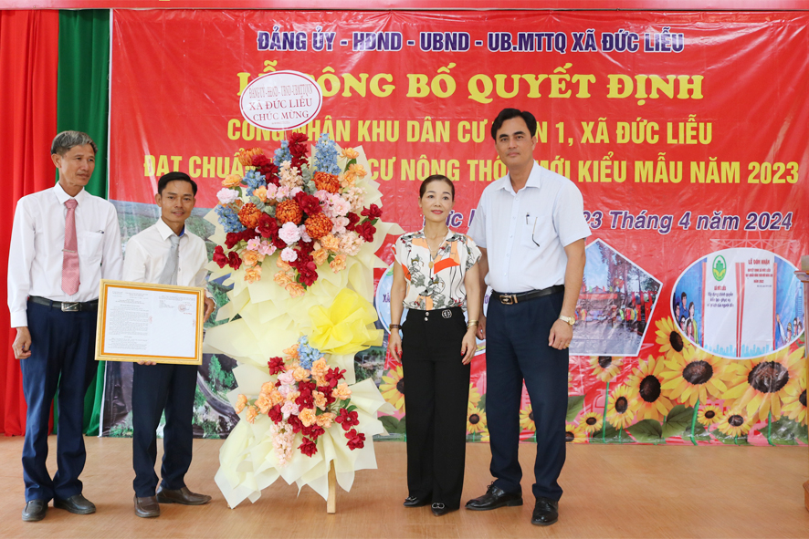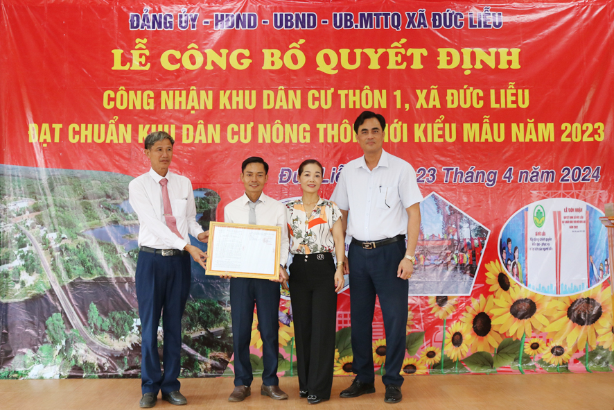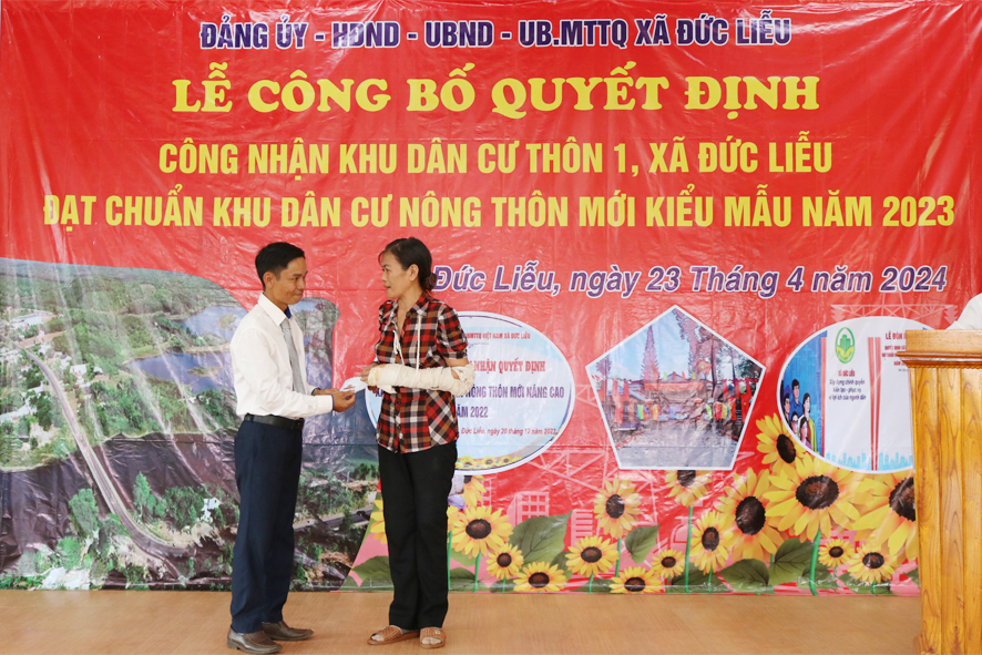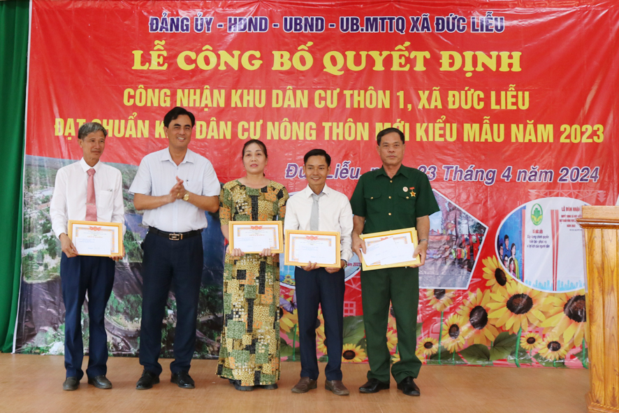 Dịp này, UBND xã Đức Liễu đã khen thưởng 02 tập thể và 03 cá nhân có nhiều đóng góp trong công tác xây dựng khu dân cư thôn 1, đạt chuẩn khu dân cư NTM kiểu mẫu năm 2023.