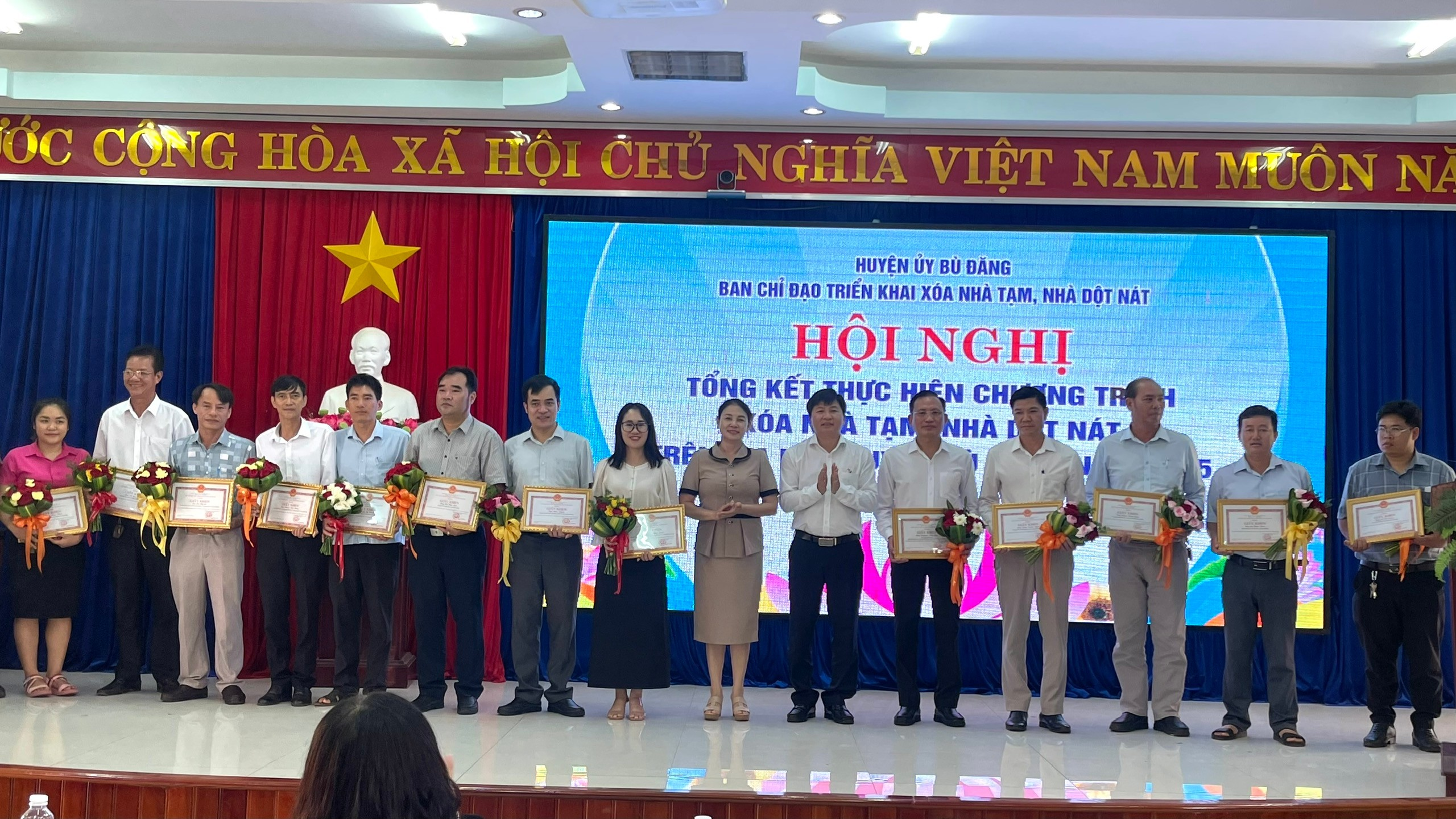 Dịp này, UBND tỉnh Bình Phước tặng Bằng khen cho 04 hộ gia đình vượt khó vươn lên thoát nghèo và tặng Bằng khen cho 01 cá nhân có thành tích xuất sắc trong phong trào xoá nhà tạm, nhà dột nát; UBND huyện Bù Đăng tặng Giấy khen cho 08 tập thể và 17 cá nhân có thành tích xuất sắc trong công tác triển khai chương trình.