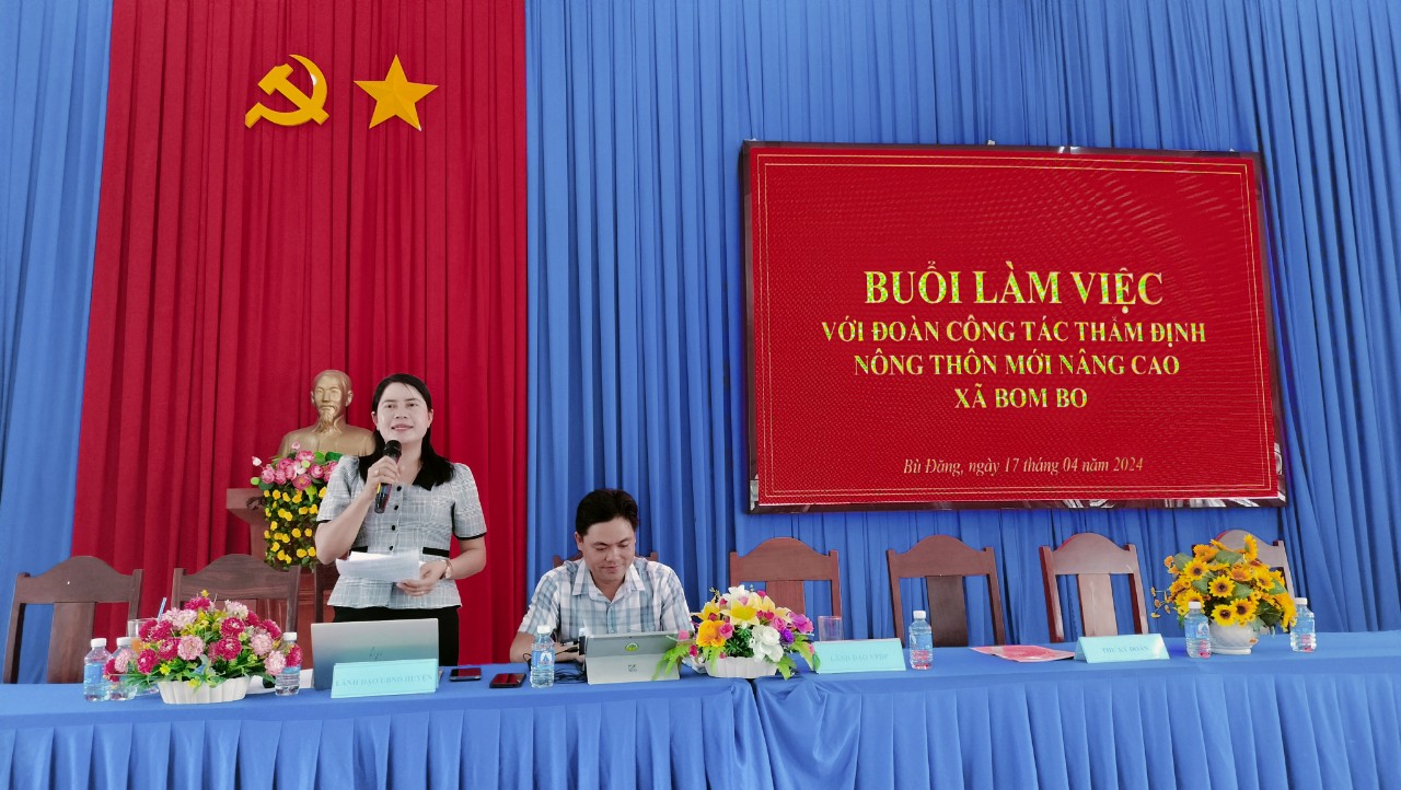 Sau khi nghe báo cáo kết quả từ các thành viên đoàn thẩm định, kết luận buổi làm việc ông Lường Đình Hải – Phó Chánh văn phòng điều phối nông thôn mới tỉnh đề nghị 2 xã Bom Bo, ĐakNhau cần điều chỉnh, bổ sung các văn bản, giấy tờ mà các các thành viên trong đoàn đã nêu ra, phối hợp với các phòng ban chuyên môn của huyện tham mưu UBND huyện chỉ đạo thực hiện hoàn thành các thủ tục gửi về Văn phòng điều phối nông thôn mới tỉnh thẩm định trình UBND tỉnh ra quyết định công nhận xã đạt chuẩn nông thôn mới, Nông thôn mới nâng cao.
