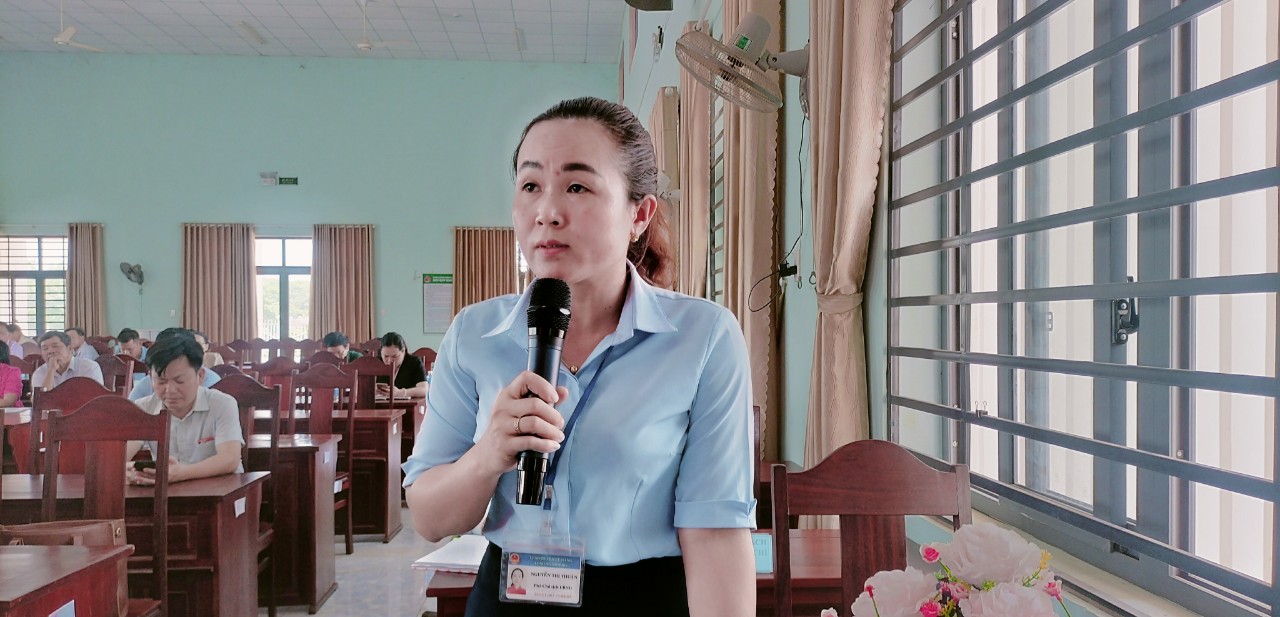 Phó chủ tịch UBND huyện Bù Đăng Thị Diệu Hiền phát biểu tại buổi kiểm tra.