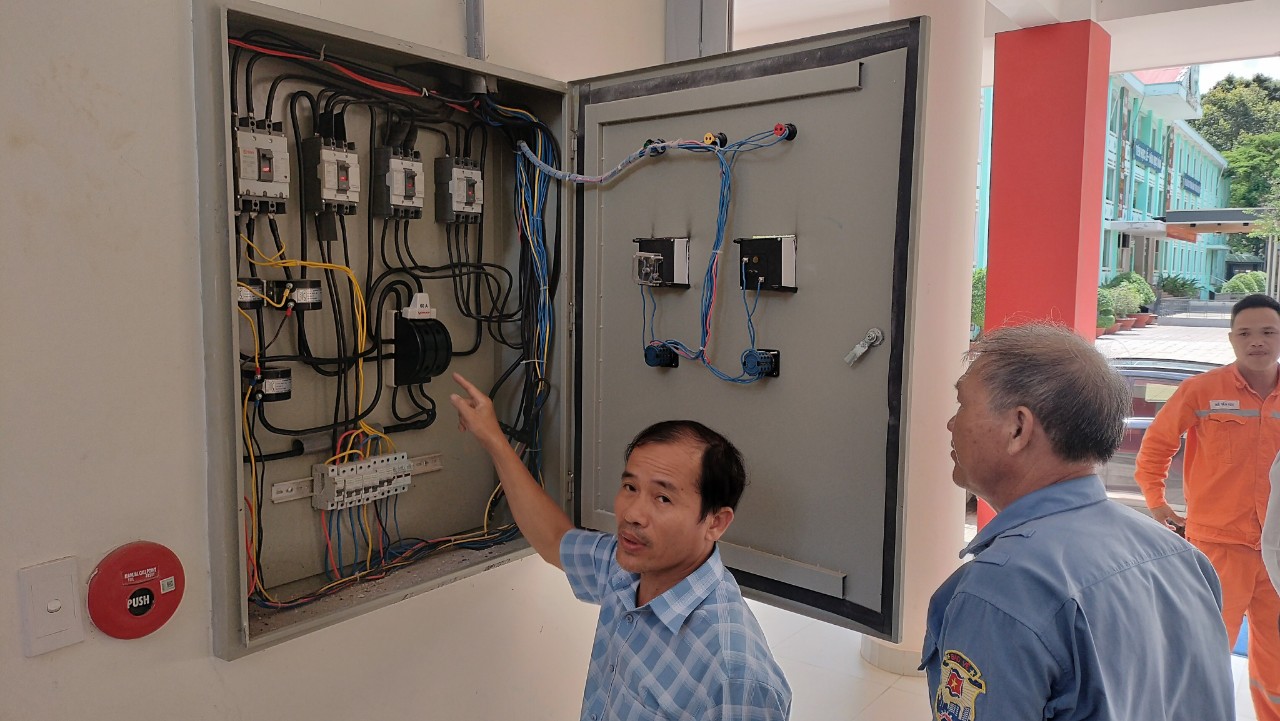 Ban Giám hiệu điểm thi trường THPT Lê Quý Đôn kiểm tra vận hành hệ thống từ máy phát điện dự phòng khi có tình huống cúp điện bất ngờ.
