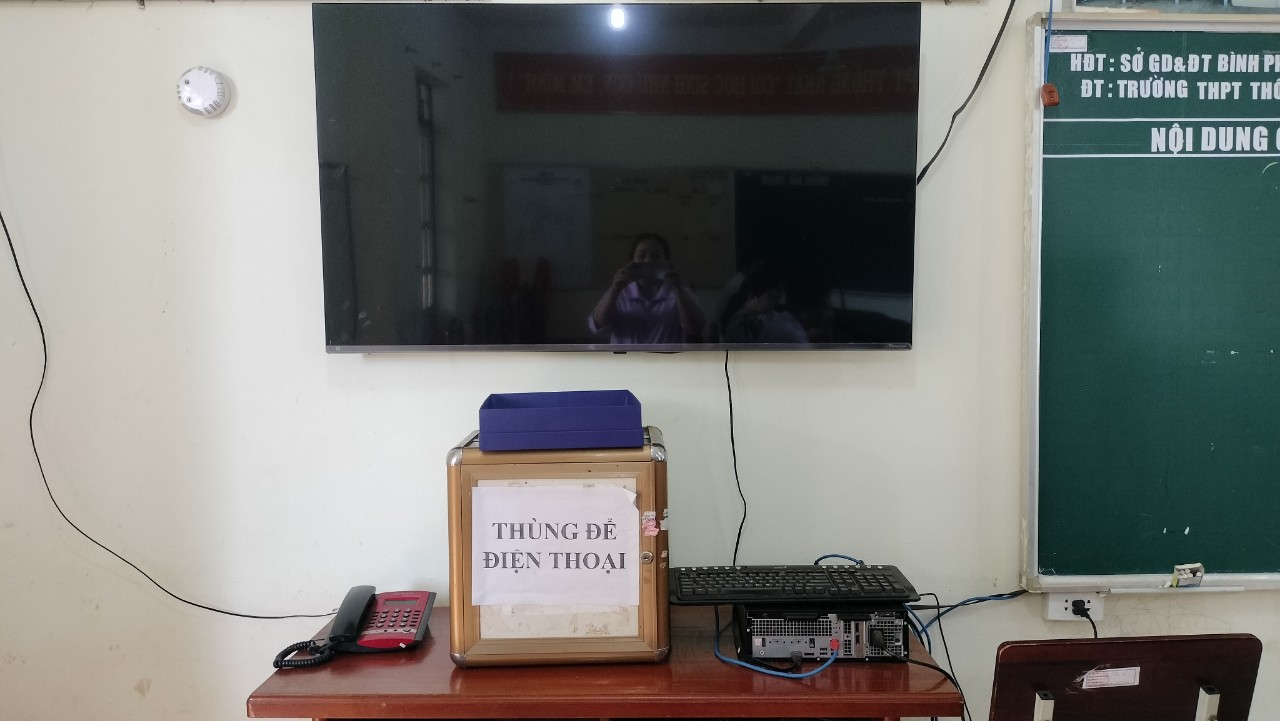 Điện thoại bàn luôn sẵn sàng để kịp thời thông tin đến Ban chỉ đạo kỳ thi, cập nhật tình hình và báo cáo khi có sự cố phát sinh.