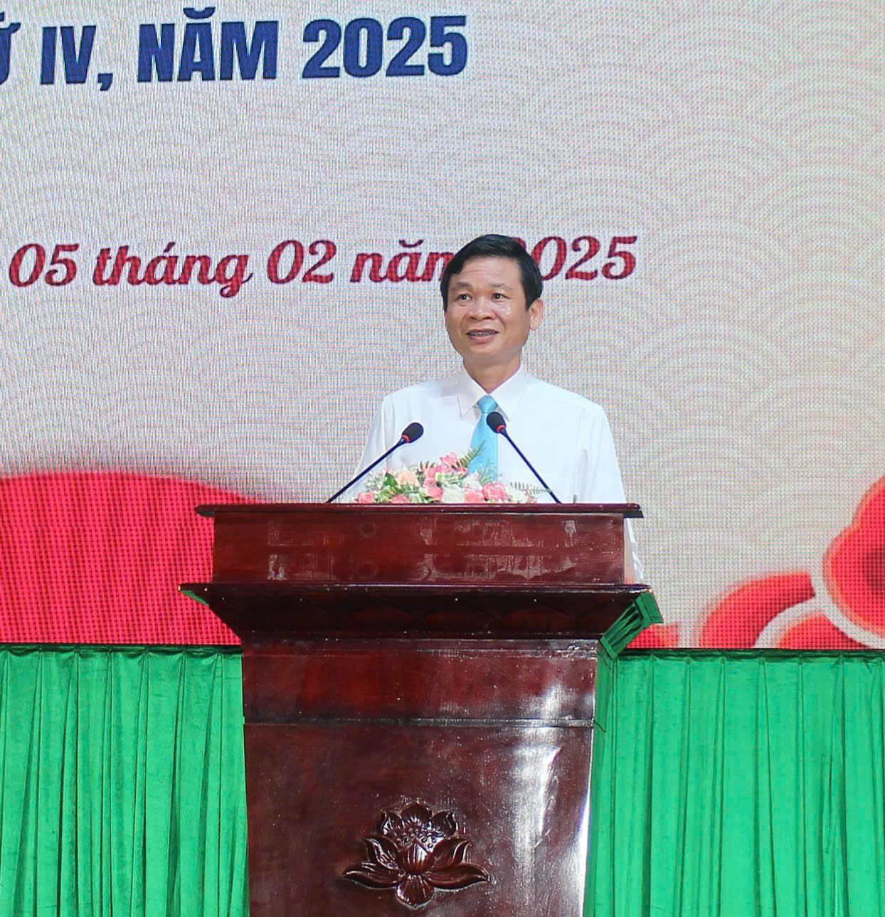 Tỉnh ủy viên, Bí thư Huyện ủy Bù Đăng phát biểu tại buổi lễ.