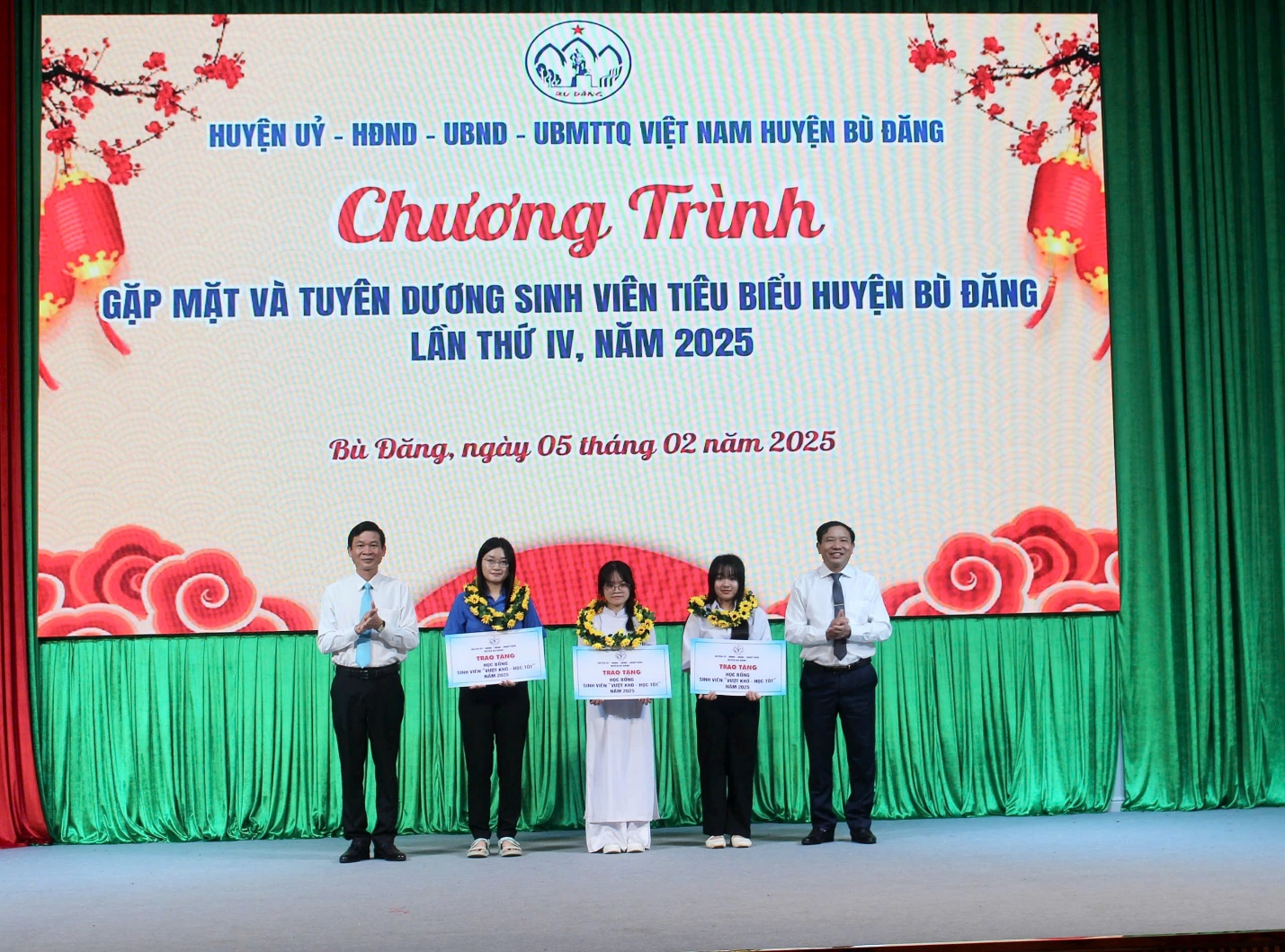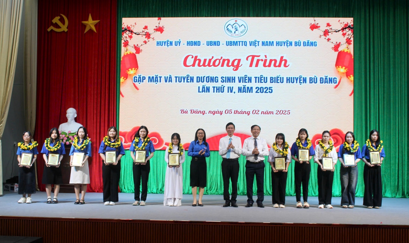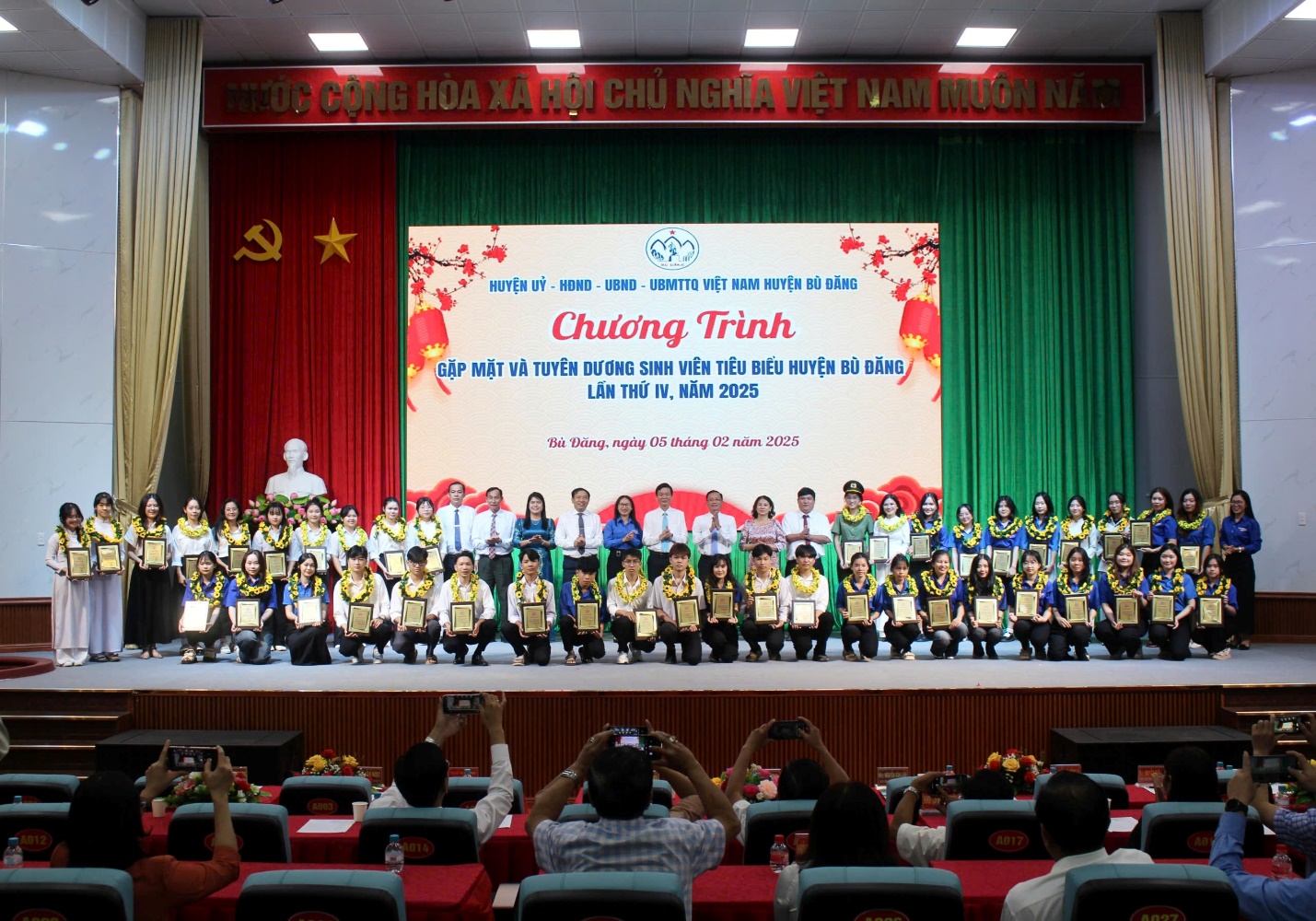 Tại buổi lễ, ban tổ chức đã tuyên dương 45 sinh viên xuất sắc, tiêu biểu năm học 2023-2024 trong các lĩnh vực học tập, nghiên cứu khoa học, văn hóa văn nghệ, thể dục thể thao, công tác đoàn - hội đang sinh sống tại huyện Bù Đăng. Trong đó, 20 sinh viên xếp loại xuất sắc, 25 sinh viên xếp loại giỏi.