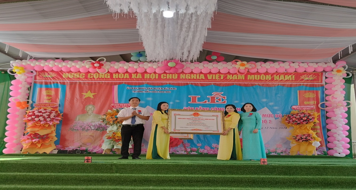 Sau 5 năm ( 2018-2023) nỗ lực phấn đấu theo các tiêu chí, ngày 23/10/2023 nhà trường được Sở Giáo dục đào tạo Bình Phước quyết định đạt kiểm định chất lượng giáo dục cấp độ 2 nhà trường vinh dự và tự hào đón bằng công nhận trường đạt chuẩn quốc gia mức độ I.