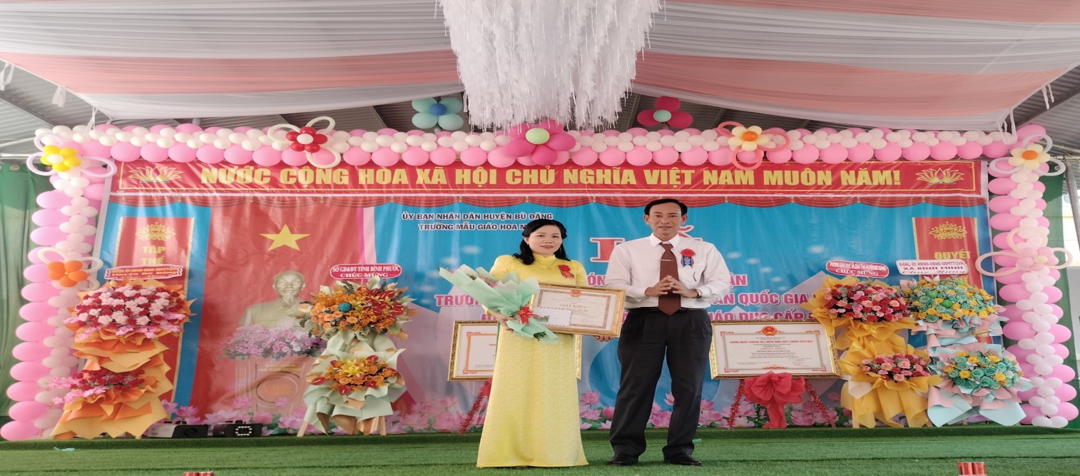 \Lãnh đạo ngành Giáo dục& đào tạo Bình Phước, huyện Bù Đăng trao bằng công nhận trường đạt chuẩn quốc gia mức độ I và chứng nhận kiểm định chất lượng Giáo dục cấp độ 2 cho Cô – trò nhà trường.