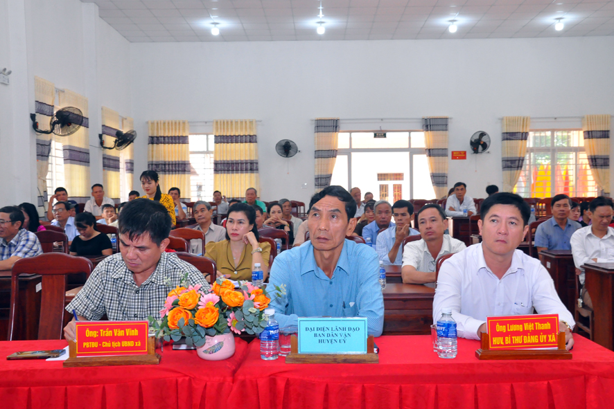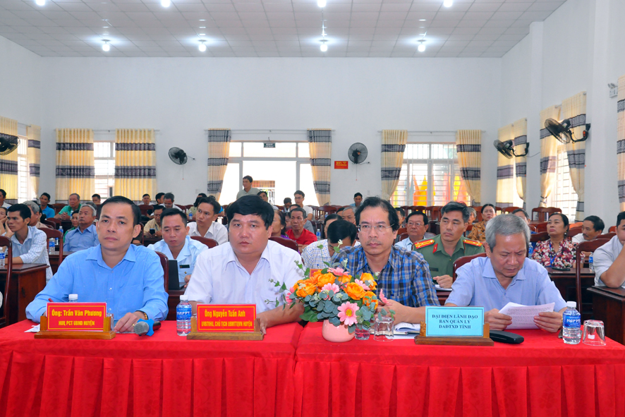Tham dự hội nghị có Đại diện lãnh đạo: Ban QLDAĐTXD tỉnh, UBMTTQVN huyện, Ban Tuyên giáo Huyện uỷ, Ban Dân vận Huyện uỷ; Công an huyện, Thanh tra huyện, Phòng Tài nguyên và Môi trường, Trung tâm Phát triển quỹ đất, Chi nhánh VPĐKĐĐ huyện, Văn phòng HĐND và UBND huyện; Đảng uỷ, HĐND, UBND, UBMTTQVN xã; các Ban, đoàn thể xã; Bí thư Chi bộ, Trưởng BQL, Trưởng ban công tác Mặt trận thôn, các Chi hội đoàn thể thôn 6 và các hộ dân có đất thu hồi tại Dự án xây dựng Hồ chứa nước Đarana.
