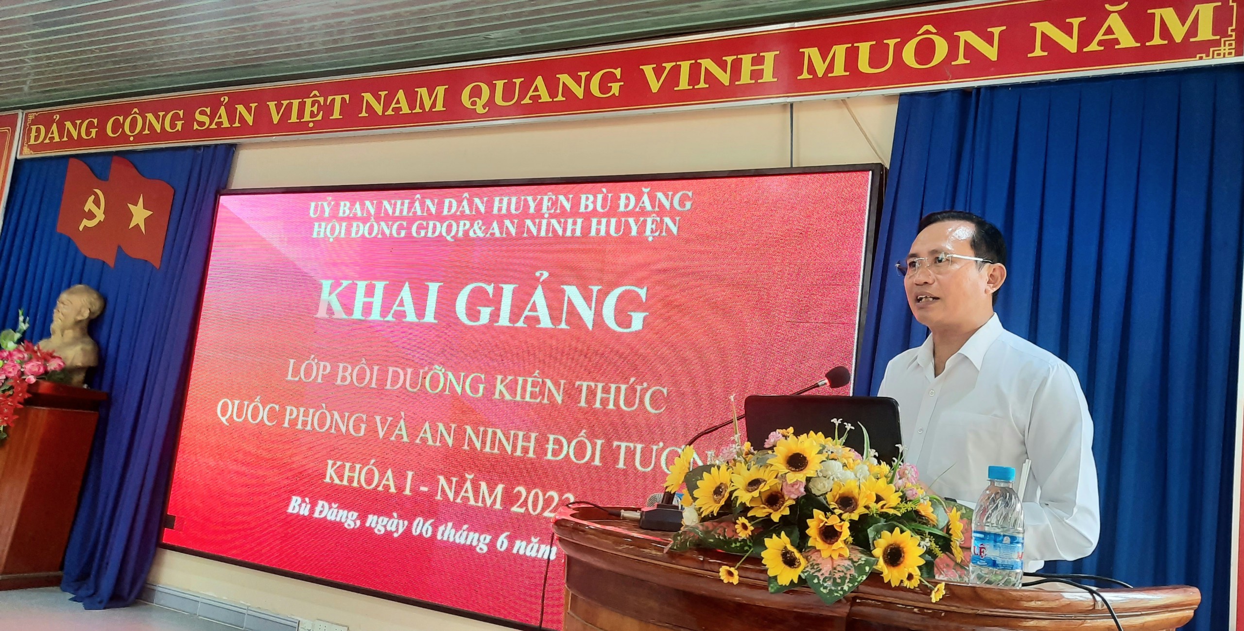 Thông qua lớp bồi dưỡng kiến thức quốc phòng, an ninh nhằm góp phần xây dựng đội ngũ cán bộ của huyện có bản lĩnh chính trị vững vàng, có ý thức, trách nhiệm cao trong lãnh đạo, chỉ đạo, tổ chức thực hiện nhiệm vụ quân sự, quốc phòng, xây dựng và bảo vệ Tổ quốc trong tình hình mới./.