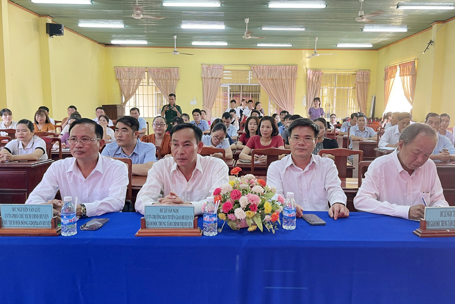 Tham dự, có đồng chí Lê Văn Ngọc Uỷ viên Ban thường vụ, Trưởng ban tuyen giáo huyện ủy, giám đốc Trung tâm chính trị huyện; đồng chí Nguyễn Văn Lưu - Uỷ viên Ban thường vụ, phó chủ tịch UBND huyện, chủ tịch Hội đồng giáo dục quốc phòng và an ninh huyện; lãnh đạo ban tổ chức, Ban chỉ huy quân sự, Ban công an huyện.