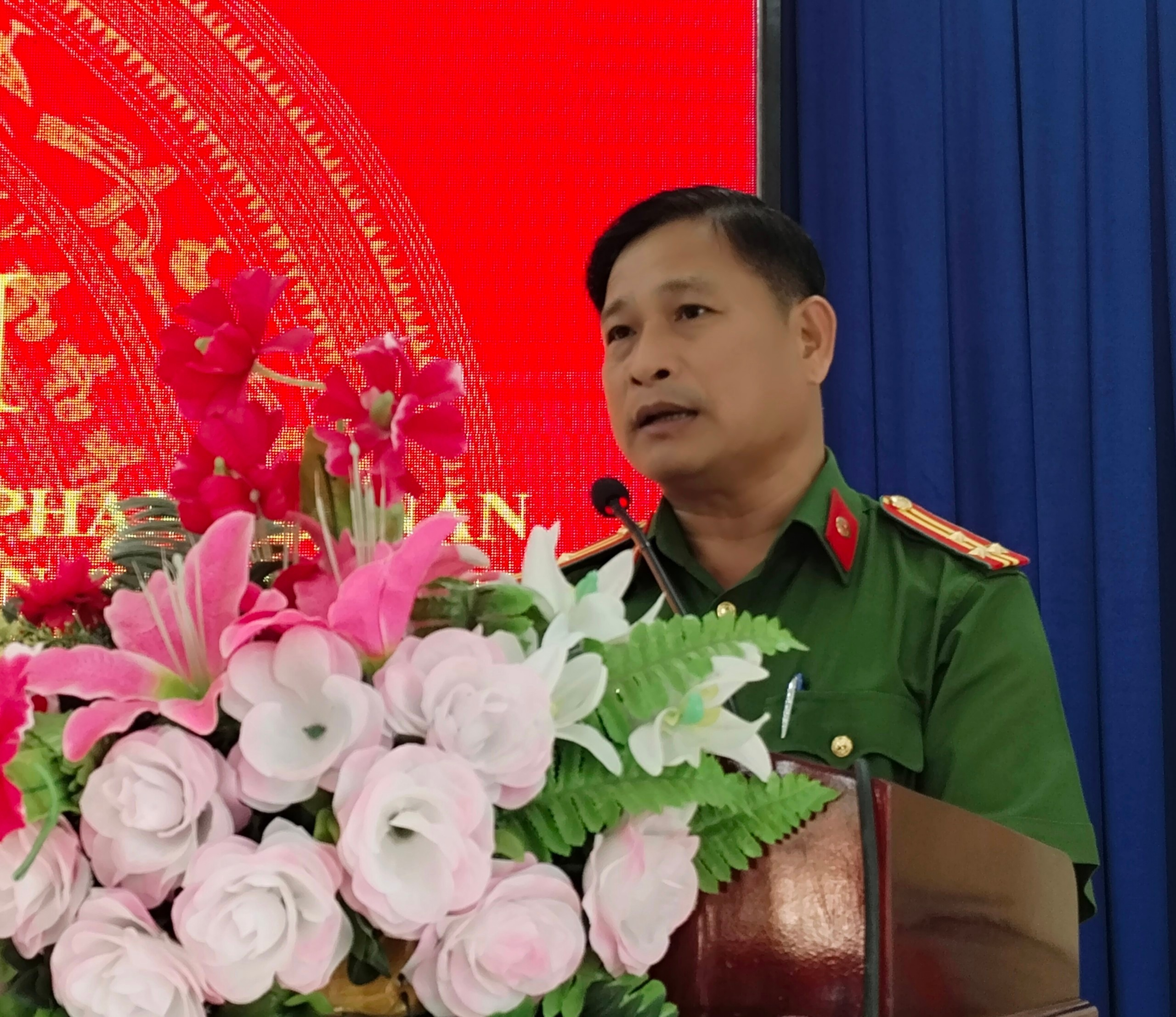 Thượng tá Nguyễn Tấn Phát – UV.BTV, Trưởng Công an huyện phát biểu khai mạc hội nghị