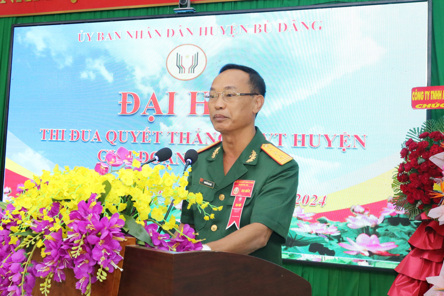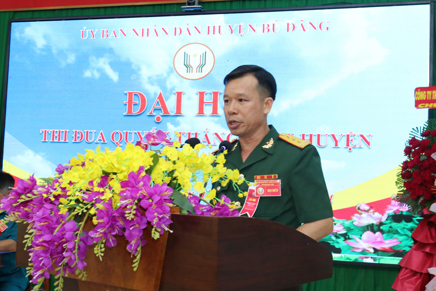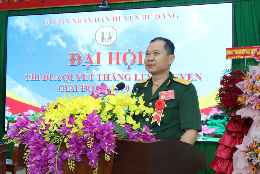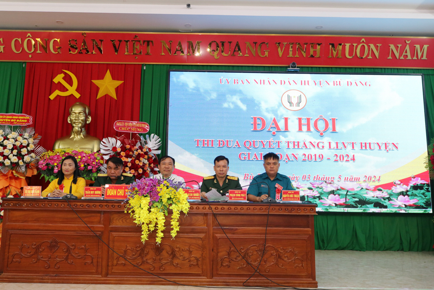 Với chủ đề: “Dân chủ - Đoàn kết – Sáng tạo – Quyết thắng” phong trào thi đua quyết thắng của LLVT huyện Bù Đăng giai đoạn 2019 – 2024 được triển khai đồng bộ với các nội dung, tiêu chí thi đua luôn bám sát nhiệm vụ chính trị của đơn vị, hình thức phát động phong phú, đa dạng đồng bộ, kịp thời, động viên cán bộ, chiến sĩ tích cực, tự giác tham gia. Thông qua phong trào thi đua quyết thắng đã hình thành và phát triển rộng khắp những điển hình tiên tiến của LLVT huyện, góp phần hoàn thành xuất sắc nhiệm vụ huấn luyện, diễn tập, sẵn sàng chiến đấu; xây dựng tổ chức đảng trong sạch vững mạnh, cơ quan, đơn vị vững mạnh toàn diện “Mẫu mực, tiêu biểu”, tại Đại hội đã có 4 tham luận điển hình góp ý trực tiếp vào báo cáo trung tâm.
