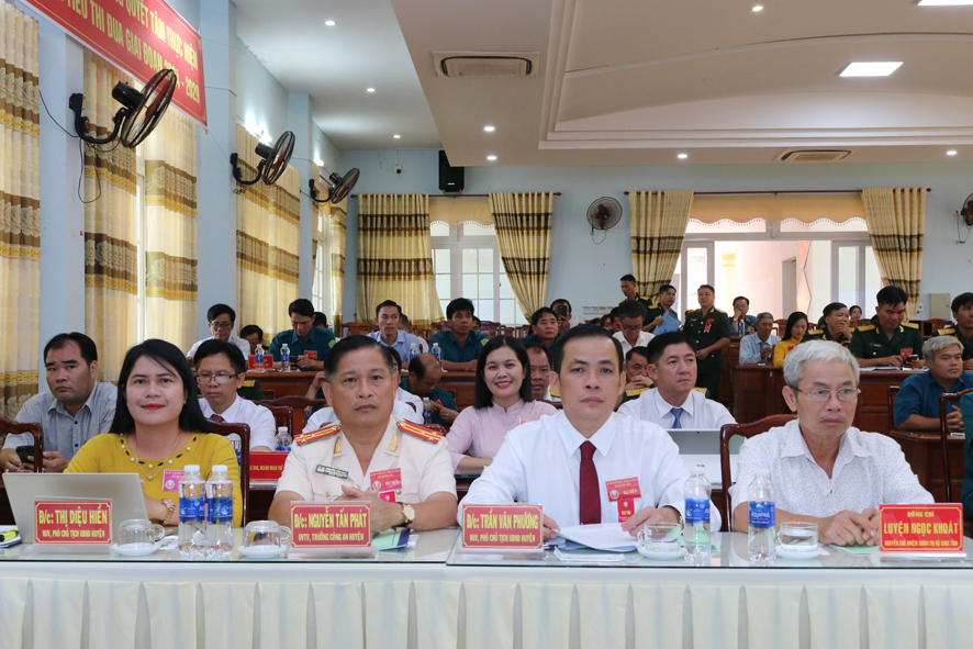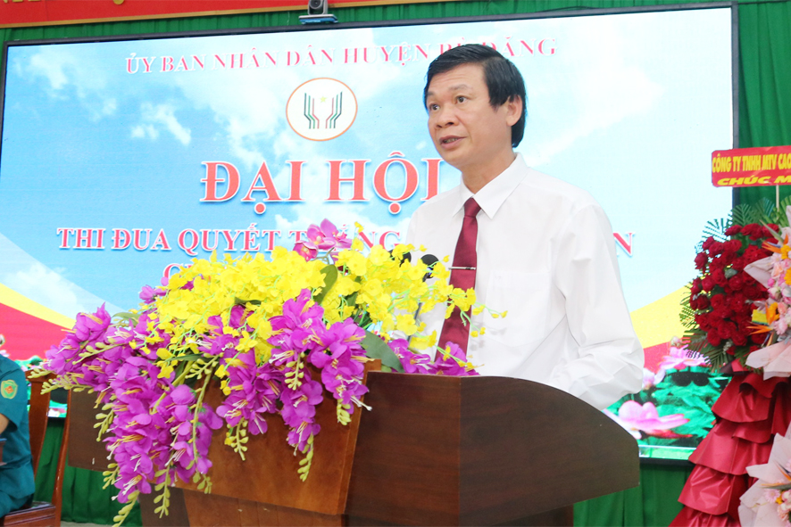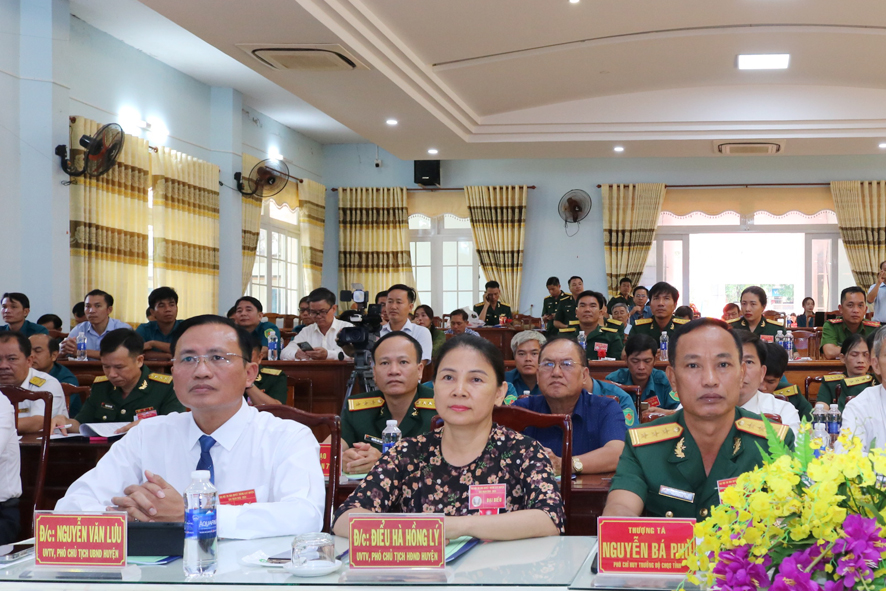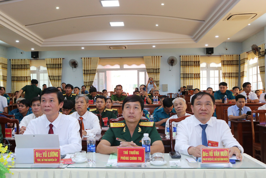 Phát biểu, chúc mừng và chỉ đạo Đại hội, đồng chí Thượng tá Nguyễn Bá Phú, Phó chỉ huy trưởng Bộ chỉ huy Quân sự tỉnh và đồng chí Vũ Lương, tỉnh ủy viên, Bí thư Huyện uỷ, biểu dương và ghi nhận những kết quả, thành tích của LLVT huyện đạt được trong giai đoạn qua. Đồng thời đề nghị LLVT huyện tiếp tục tạo chuyển biến sâu sắc, thấy rõ vai trò, vị trí, ý nghĩa, trong nhận thức về công tác thi đua. Phát huy những kết quả đạt được, nhân rộng các mô hình, giải pháp, cách làm hay. Qua đó, tiếp tục đẩy mạnh việc phát động và triển khai phong trào thi đua với những nội dung, mục tiêu cụ thể, thiết thực; bồi dưỡng, xây dựng nhân cách người quân nhân cách mạng, toàn diện, có tri thức, sức khỏe, năng động, sáng tạo, giàu lòng yêu nước, sống có văn hóa, tình nghĩa…