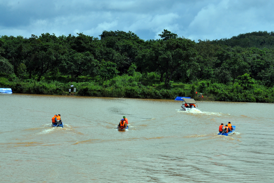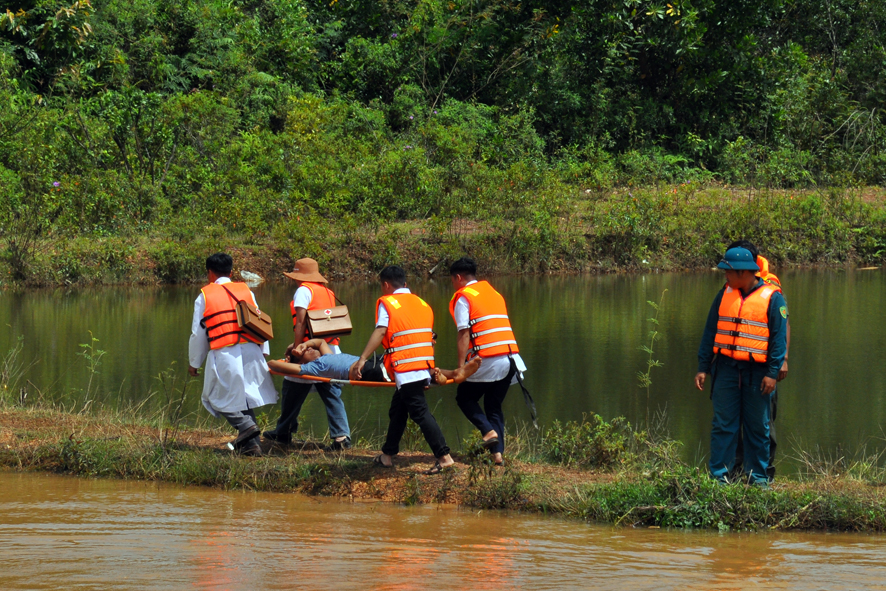 Tình huống giả định của lực lượng cứu hộ ứng cứu người đuối nước và trục vớt tài sản của người dân bị nước cuốn trôi khi nước lũ dâng cao