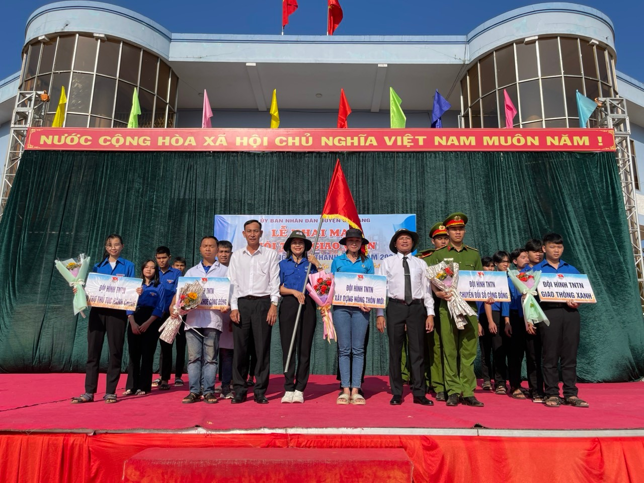 Cũng trong dịp này Ban Thường vụ Huyện đoàn tổ chức phát động Tháng thanh niên năm 2024 với chủ đề: “Thanh niên xung kích tình nguyện vì cuộc sống cộng đồng” và ra mắt các đội thanh niên tình nguyện: Đội hình thanh niên tình nguyện giao thông xanh; Đội hình thanh niên tình nguyện chuyển đổi số cộng đồng; Đội hình thanh niên tình nguyện xây dựng nông thôn mới; Đội hình thanh niên tình nguyện chăm sóc sức khỏe cộng đồng; Đội hình thanh niên tình nguyện hỗ trợ thủ tục hành chính.