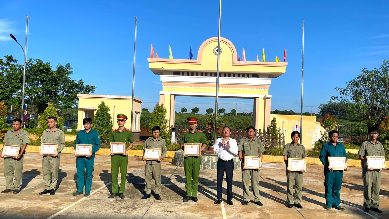 Nhân dịp này, chủ tịch UBND huyện Bù Đăng khen thưởng đột xuất cho 20 cá nhân có thành tích xuất sắc trong quá trình truy bắt đối tượng trộm cắp tài sản và đối tượng tàng trữ trái phép chất ma tuý.