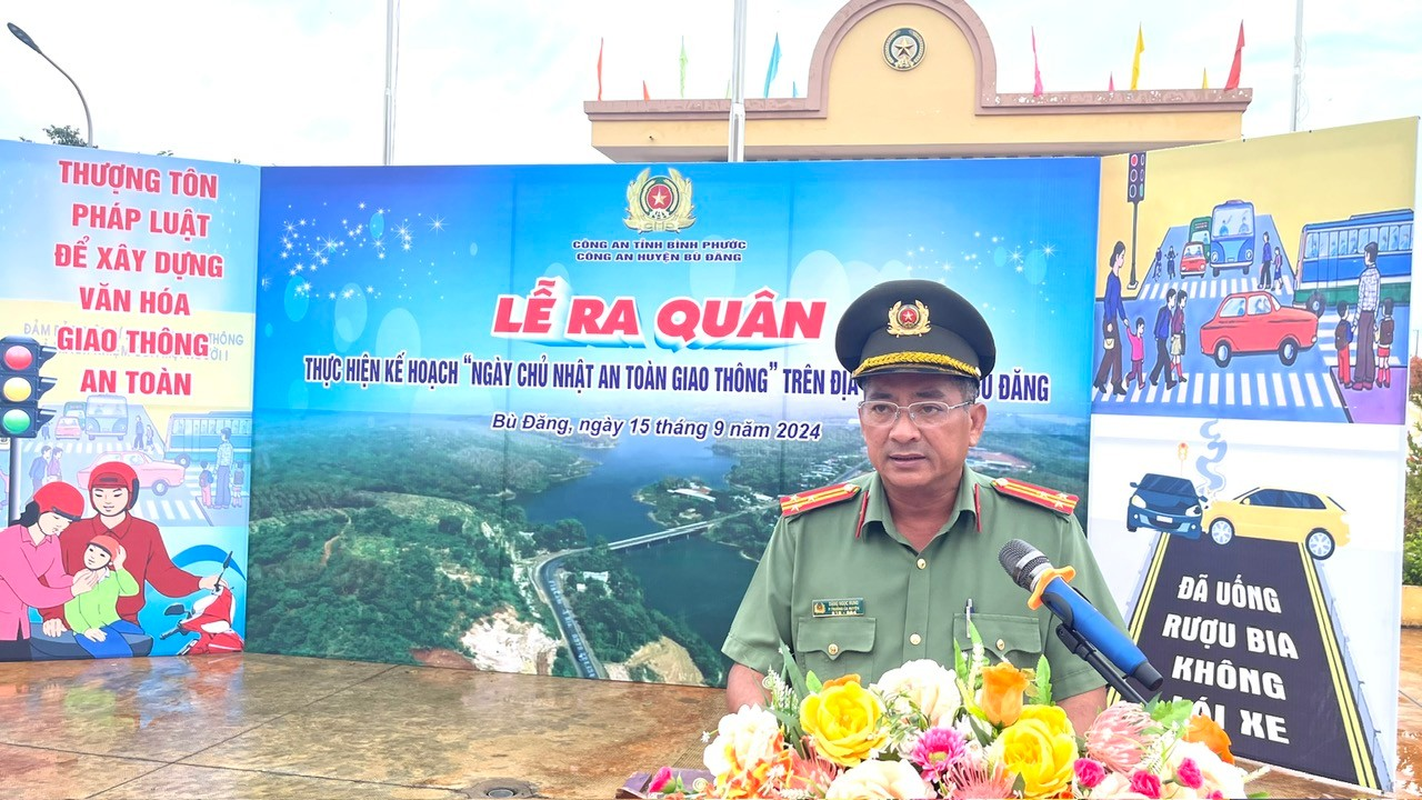 Thượng tá Đặng Ngọc Hùng – Phó trưởng Công an huyện Bù Đăng phát biểu phát động ra quân.
