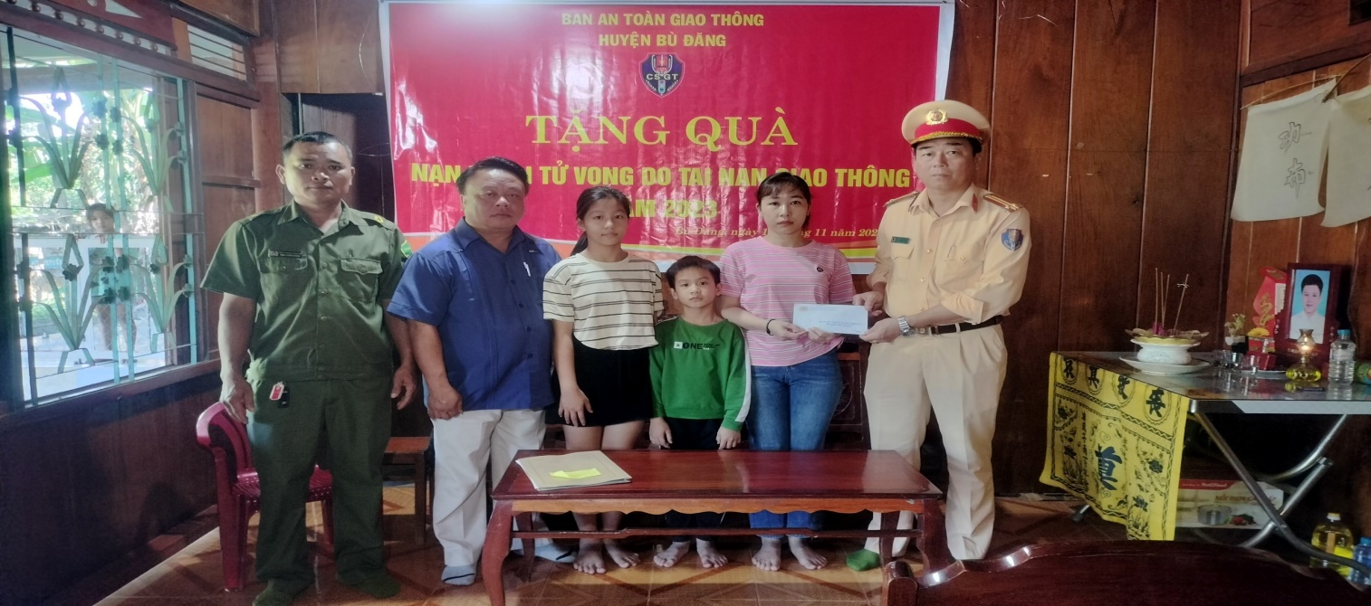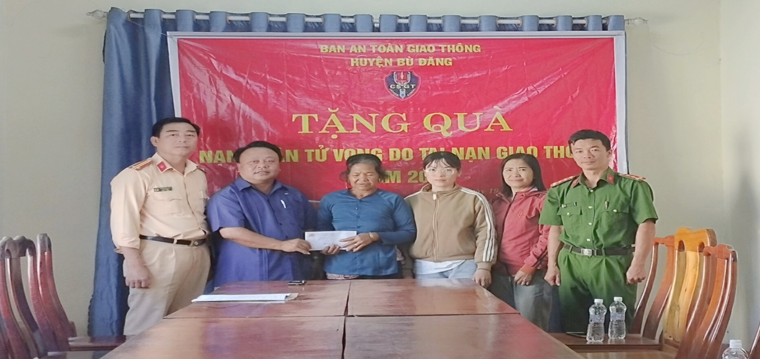 Tại các điểm đến, Ban An toàn giao thông huyện trao tặng mỗi gia đình 1 phần quà từ 2,5 – 5 triệu đồng. Các thành viên trong đoàn ân cần thăm hỏi, động viên và chia sẻ những đau thương mất mát của các gia đình. Đồng thời, mong muốn các gia đình tiếp tục tuyên truyền cho người thân trong gia đình và cộng đồng về những hậu quả của TNGT, từ đó nâng cao ý thức chấp hành nghiêm chỉnh luật giao thông, tránh xảy ra những hậu quả đáng tiếc. Đại diện Ban ATGT huyện Bù Đăng thăm hỏi, trao quà cho Gia đình có nạn nhân tử vong do TNGT tại xã Đoàn Kết. 10 tháng đầu năm 2023 trên địa bàn huyện Bù Đăng xảy ra 27 vụ tai nạn giao thông ( giảm 21 vụ so với năm 2022), làm chết 26 người, hư hỏng 47 xe ô tô, mô tô các loại, ước tính thiệt hại trên 600 triệu đồng. Đại diện Ban ATGT huyện Bù Đăng thăm hỏi, trao quà cho Gia đình có nạn nhân tử vong do TNGT tại xã Thống Nhất. Đại diện Ban ATGT huyện Bù Đăng thăm hỏi, trao quà cho Gia đình có 2 nạn nhân tử vong do TNGT tại xã Minh Hưng. Ngày thế giới tưởng niệm các nạn nhân tử vong do TNGT là dịp để các cấp chính quyền tăng cường các hoạt động tuyên truyền, cảnh báo cho toàn xã hội về thảm hoạ, các nguyên nhân và nguy cơ gây ra TNGT; nâng cao nhận thức, ý thức của toàn xã hội trong việc chấp hành pháp luật trật tự an toàn giao thông, phòng, tránh TNGT; kêu gọi sự giúp đỡ, chia sẻ từ cộng đồng về những tổn thất, mất mát, khó khăn của các nạn nhân, gia đình nạn nhân bị TNGT, góp phần thực hiện mục tiêu giảm thiểu TNGT năm 2023 và các năm tiếp theo.