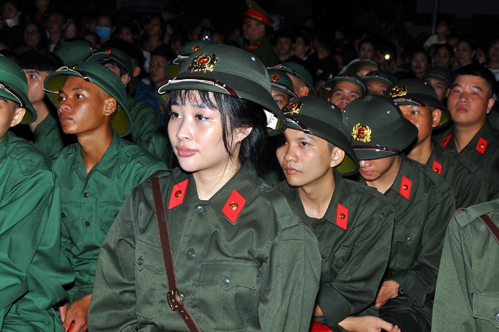 Các tân binh dự Lễ tuyên dương trong quân phục người lính