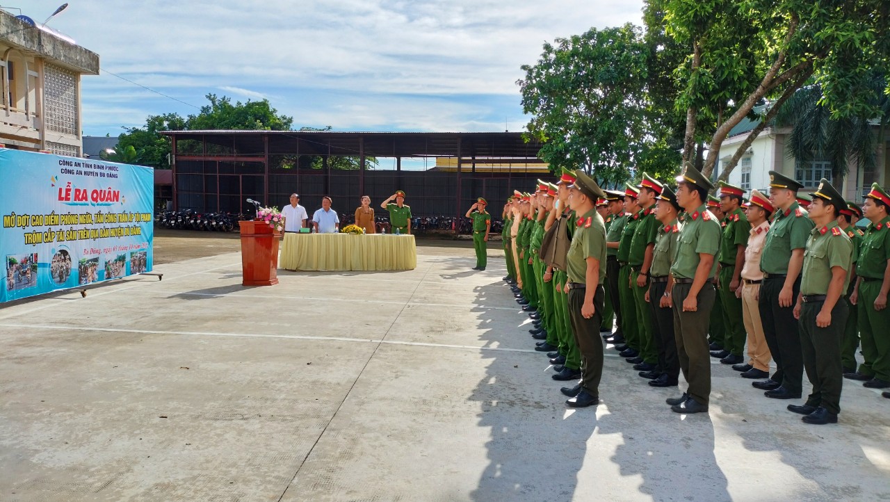 Tại buổi lễ, Trung tá Bùi Đăng Khoa – Phó trưởng công an huyện đã phát lệnh ra quân đợt cao điểm tấn công, trấn áp tội phạm. Với phương châm “Tấn công trấn áp mạnh mẽ các loại tội phạm”, các đội nghiệp vụ Công an huyện và lực lượng công an 16 xã, thị trấn tập trung làm tốt công tác điều tra cơ bản, nắm chắc địa bàn, chủ động xây dựng phương án, kế hoạch theo chức năng nhiệm vụ. Đồng thời, tổ chức biên soạn tài liệu tờ rơi tuyên truyền rộng khắp từ huyện đến thôn, ấp, khu phố về phương thức, thủ đoạn hoạt động phạm tội trộm cắp tài sản để nhân dân, các cơ quan, doanh nghiệp, trường học, kịp thời nắm bắt và nâng cao tinh thần bảo vệ tài sản, chủ động phòng ngừa tố giác tội phạm bên cạnh đó lồng ghép các nội dung tuyên truyền Công tác phòng cháy chữa cháy, công tác đảm bảo trật tự an toàn giao thông, phòng ngừa tín dụng đen, lừa đảo… Rà soát, lập danh sách các đối tượng có biểu hiện hoạt động phạm tội trộm cắp tài sản, tiêu thụ hiện hành để tiến hành gặp gỡ, răn đe, giáo dục, yêu cầu đối tượng cam kết không có hành vi vi phạm để phòng ngừa, kịp thời ngăn chặn các hành vi vi phạm pháp luật xảy ra. Đồng thời xác định các đối tượng có biểu hiện nghi vấn trộm cắp tài sản để lập hiềm nghị, chuyên án, tập trung lực lượng, biện pháp, xác minh, xử lý theo quy định của pháp luật. Kịp thời giải quyết những vấn đề phức tạp nổi lên từ cơ sở, không để bị động, bất ngờ.
