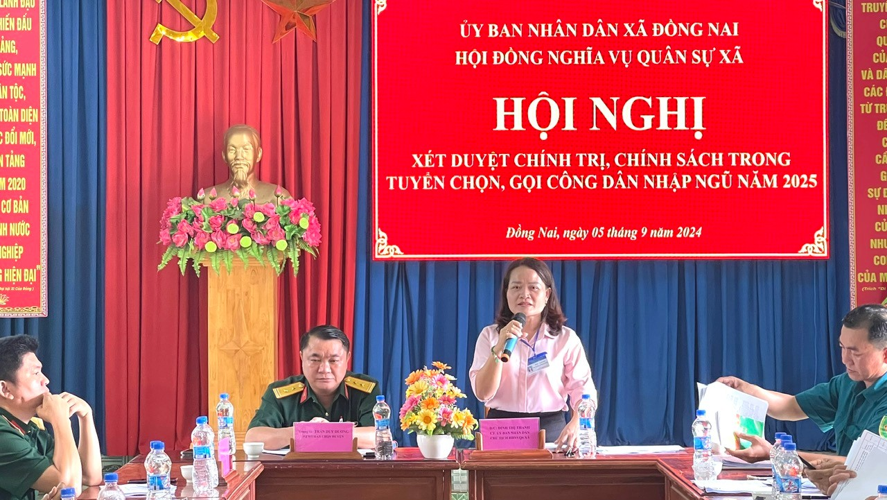 Sau khi nghe các thành viên Hội đồng nghĩa vụ quân sự xã thảo luận Đ/c Đinh Thị Thanh – CT. UBND xã, Chủ tịch Hội đồng nghĩa vụ quân sự xã Đồng Nai. Đề nghị các thành viên hội đồng thực hiện đúng chức trách nhiệm vụ. Đối với Ban Chỉ huy quân sự xã hoàn chỉnh hồ sơ, các loại giấy tờ, danh sách, đồng thời phối hợp với công an, cán bộ phụ trách giáo dục, cán bộ phụ trách chính sách xác minh các trường hợp thuộc diện sẵn sàng nhập ngũ năm 2025; đối với Công an xác minh lý lịch đối với các công dân đủ điều kiện sơ tuyển sức khoẻ và các trường hợp không có tại địa phương; Cán bộ phụ trách giáo dục phối hợp với BCH quân sự xã và các trường học xác minh học vấn của các công dân thuộc diện nhập ngũ năm 2025.