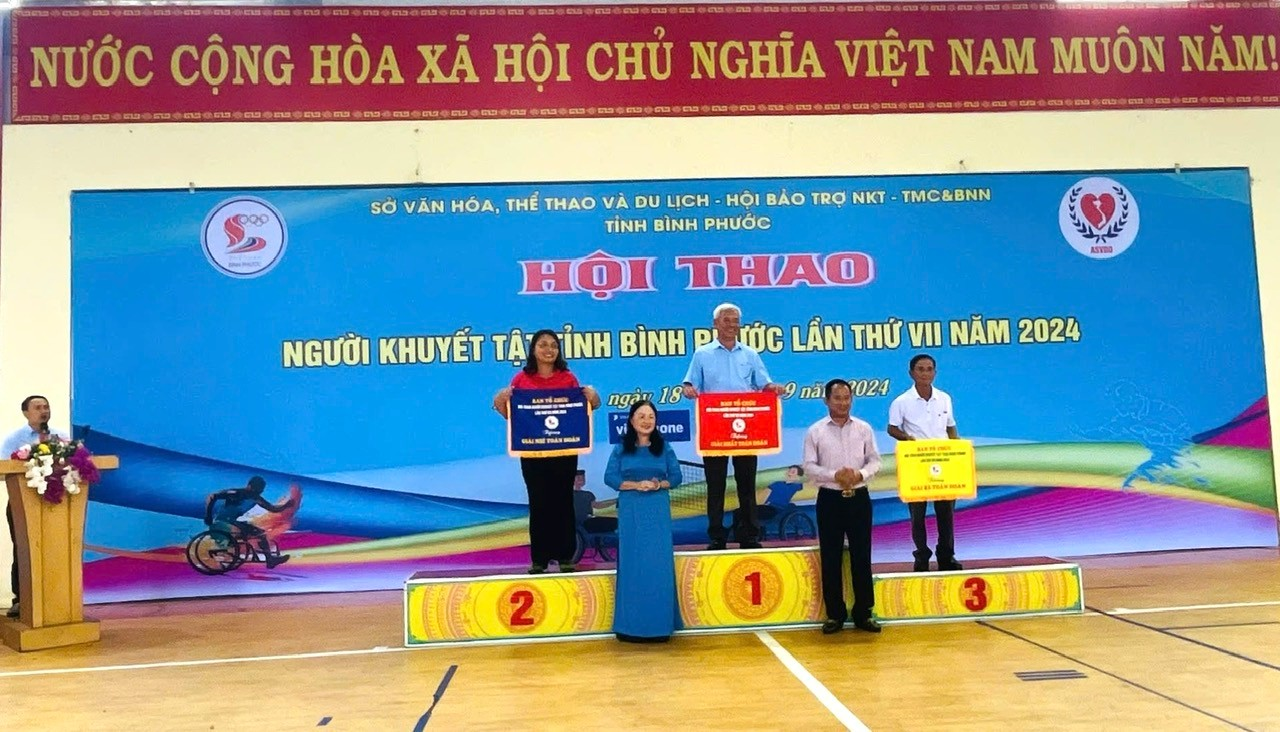 Trưởng đoàn thể thao người khuyết tật huyện Bù Đăng nhận giải toàn đoàn.