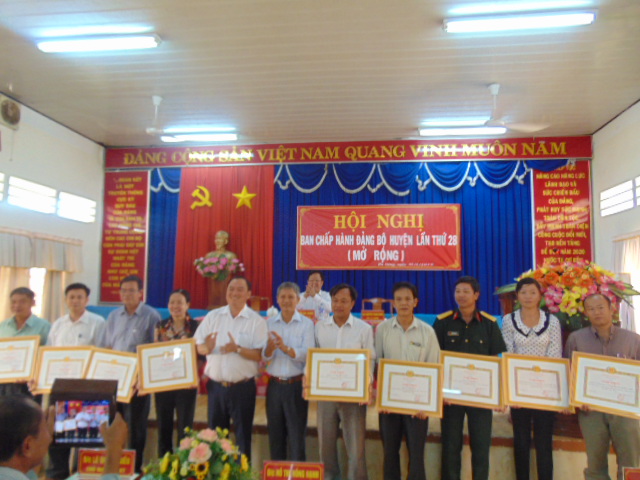 Công tác xây dụng hệ thống chính trị tiếp tục được chú trọng gắn với công tác nhân sự chuẩn bị Đại hội Đảng 2 cấp. Hệ thống chính trị từ huyện xuống cơ sở luôn được củng cố, kiện toàn và từng bước đổi mới phương thức lãnh đạo. Cán bộ, đảng viên và đông đảo các tầng lớp nhân dân luôn nêu cao tinh thần tự giác, tích cực thực hiện có hiệu quả việc “Học tập và làm theo tấm gương đạo đức Hồ Chí Minh”. Nghị quyết của các cấp đã được cụ thể hóa và triển khai sâu rộng trong cán bộ, đảng viên và nhân dân. Đảng bộ huyện đã tăng cường chỉ đạo công tác giáo dục chính trị, tư tưởng, định hướng công tác tuyên truyền; tổ chức triển khai, quán triệt Nghị quyết Hội nghị Trung ương 10 (khóa XI) và học tập chuyên đề năm 2015 cho toàn thể cán bộ, đảng viên, công chức, viên chức trong huyện. Bên cạnh đó, Đảng bộ huyện luôn chú trọng tăng cường công tác quản lý đảng viên và tổ chức cơ sở Đảng, chuyển Đảng chính thức được kịp thời. Trong quý I năm 2015, Đảng bộ huyện đã kết nạp được 61 đảng viên mới. Công nhận 40 tổ chức cơ sở Đảng đạt trong sạch vững mạnh. Trao tặng huy hiệu 30, 40, 50, 55 tuổi Đảng cho 27 đảng viên. Trung tâm Bồi dưỡng Chính trị huyện phối hợp với các ban xây dựng Đảng tổ chức tốt các lớp bồi dưỡng lý luận chính trị.