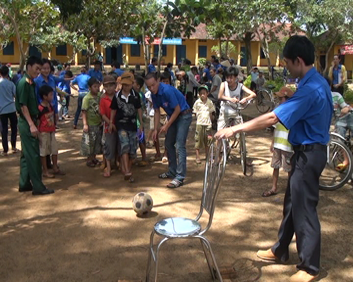 Tại Trường tiểu học xã Đoàn Kết, các hoạt động tình nguyện nhanh chóng được tổ chức với nhiều hoạt động vui tươi, sôi nổi thu hút hàng trăm thiếu nhi địa phương tham gia như: thi đá bóng vào gôn, bịt mắt đập lon, thẩy bóng vào thau…