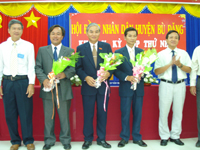 Kỳ họp thứ Nhất hội đồng nhân dân huyện khóa V đã được nghe báo cáo kết quả cuộc Bầu cử Đại biểu Quốc hội khóa XIII và bầu cử Đại biểu HĐND các cấp nhiệm kỳ 2011 – 2016. Trong đó nêu rõ. Trong cuộc bầu cử vừa qua, toàn huyện có trên 87 ngàn 500 cử tri đi bầu cử, đạt tỷ lệ 99,8%. Tổng số đại biểu hội đồng nhân dân huyện được bầu là 39 đại biểu. Trên cơ sở đó Kỳ họp đã tiến hành các nội dung quan trọng nhằm kiện toàn bộ máy lãnh đạo của Hội đồng nhân dân và UBND huyện. Với tinh thần dân chủ, trách nhiệm, đúng luật định, kỳ họp đã tiến hành bầu đủ các chức danh: Chủ tịch, phó chủ tịch và ủy viên thường trực hội đồng nhân dân huyện. Bầu ra ban pháp chế và Ban kinh tế xã hội HĐND huyện. Trong đó ông Đoàn Văn Bé – Phó bí thư thường trực huyện ủy tiếp tục được tái cử làm chủ tịch HĐND huyện khóa V. Đối với ủy ban nhân dân huyện: kỳ họp cũng đã tiến hành bầu đủ các chức danh theo luật định. Gồm Chủ tịch; 3 Phó Chủ tịch và 5 Ủy viên UBND huyện. Trong đó ông Nguyễn Anh Hoàng – được tái cử làm Chủ tịch; 3 Phó Chủ tịch cũng được tái cử với sự tín nhiệm cao.