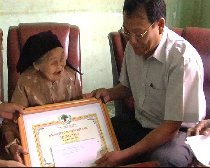 Tại gia đình các cụ, Chủ tịch Nguyễn Anh Hoàng đã trân trọng kính chúc chúc các cụ sống vui, sống khỏe, sống có ích, tiếp tục giáo dục cho con cháu thực hiện tốt chủ trương, chính sách của Đảng và pháp luật của Nhà nước. Tích cực lao động sản xuất, phát triển kinh tế, xây dựng gia đình hạnh phúc. Nhân dịp này, Chủ tịch huyện đã tặng quà của tỉnh và của huyện cho các cụ. trong đó quà của huyện trị giá 200 ngàn đồng; quà của tỉnh trị giá 1 triệu đồng. Được biết, hiện nay trên đại bàn huyện có 620 cụ được trợ cấp thường xuyên. Trong đó có 490 cụ được chúc thọ và tặng quà.