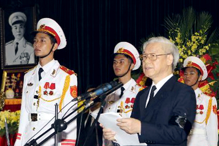 Tổng Bí thư Nguyễn Phú Trọng đọc điếu văn. Ảnh: TTXVN