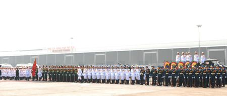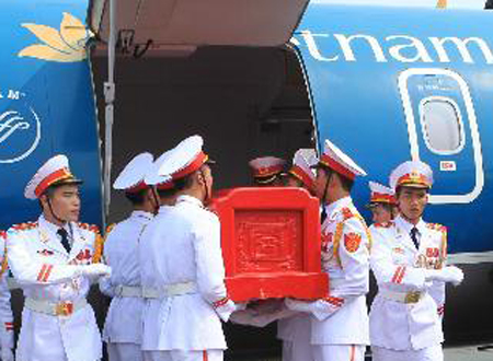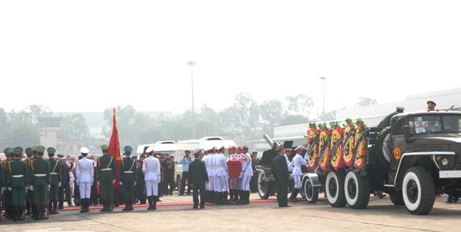 Đưa linh cữu Đại tướng lên máy bay. Ảnh: TTXVN