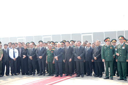 Các đồng chí lãnh đạo đảng và nhà nước tiễn linh cữu