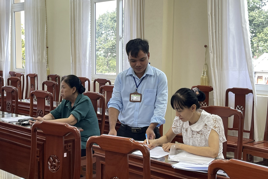 Ông Trần Văn Phương Phó chủ tịch UBND huyện cùng lãnh đạo TTPTQĐ dự giám sát buổi bán đấu giá đất