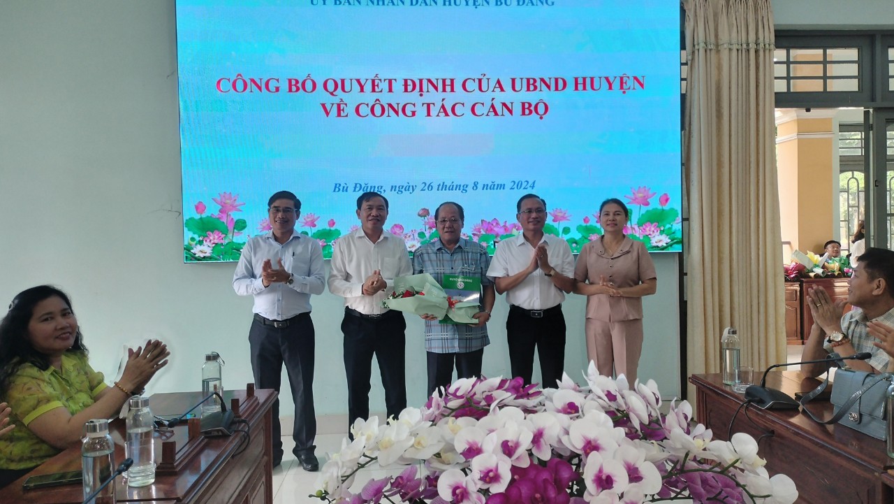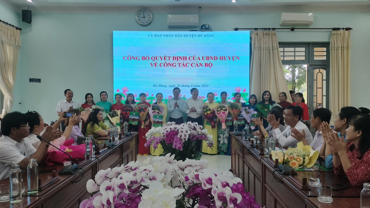 Tại buổi lễ Công bố Chủ tịch UBND huyện Vũ Văn Mười trao Quyết định và chúc mừng các cán bộ quản lý nghỉ hưu, được điều động, bổ nhiệm và bổ nhiệm lại . Đồng thời, đề nghị các đồng chí cán bộ quản lý ngành Giáo dục huyện tiếp tục phát huy tinh thần trách nhiệm, đoàn kết, cùng tập thể cấp ủy chi bộ, Ban Giám hiệu và giáo viên, nhân viên nhà trường, tiếp tục tham mưu cho Ủy ban nhân dân huyện, ngành giáo dục huyện triển khai thực hiện xuất sắc các nhiệm vụ được giao.