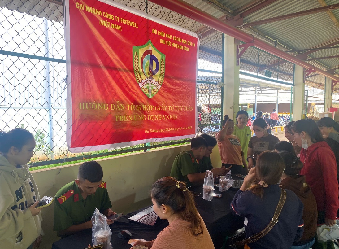 Theo đó, thực hiện chiến dịch, các cán bộ chiến sĩ thuộc Đội chữa cháy và CNCH khu vực huyện Bù Đăng đã tổ chức 05 buổi ra quân tuyên truyền, hướng dẫn người dân thực hiện việc tích hợp thông tin các loại giấy tờ cá nhân trên ứng dụng VneID. Qua đó đã tuyên truyền, hướng dẫn cho 752 lượt người và tích hợp thành công cho 160 lượt người dân, công nhân tại các công ty Nhà máy chế biến mủ cao su Nghĩa Trung; Công ty TNHH Nông nghiệp VELCORES AGROPEDIA, xã Đức Liễu; chi nhánh Cty Chi nhánh Công ty TNHH Freewell Việt Nam trên địa bàn huyện Bù Đăng.