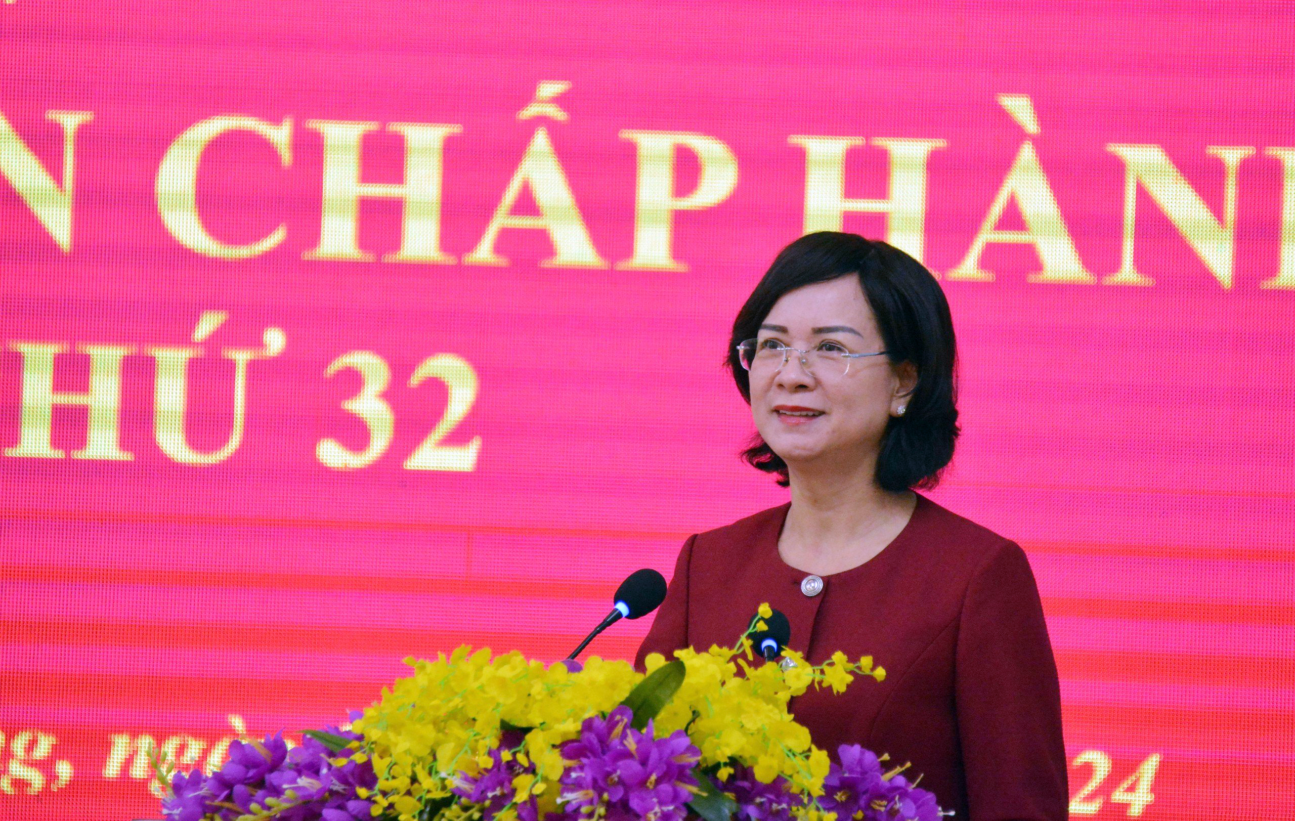 Đồng chí Trần Tuyết Minh Ủy viên Ban Thường vụ Tỉnh ủy, Phó Chủ tịch UBND tỉnh phát biểu chúc mừng và chỉ đạo tại hội nghị
