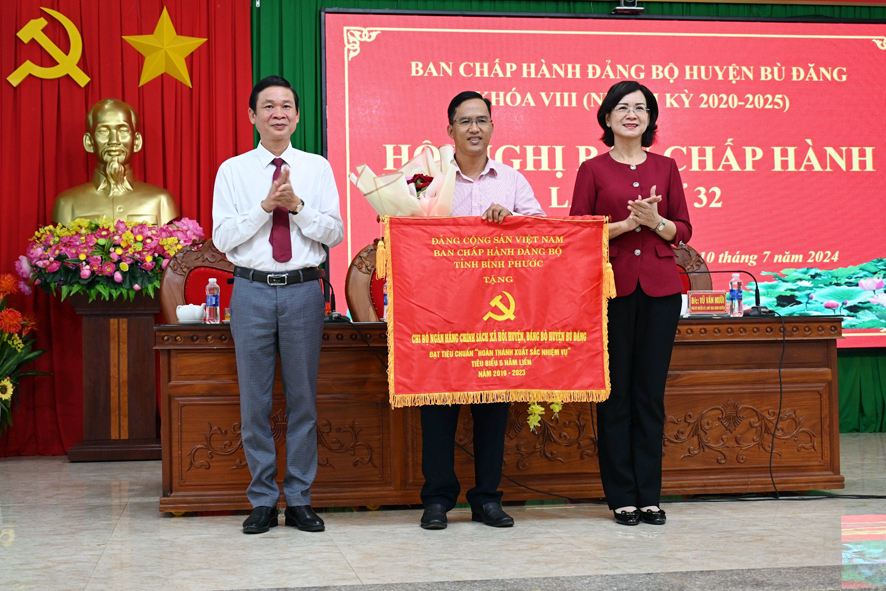 Phát biểu chúc mừng và chỉ đạo Hội nghị, Ủy viên Ban Thường vụ Tỉnh ủy, Phó Chủ tịch UBND tỉnh Trần Tuyết Minh ghi nhận, biểu dương về tốc độ thu ngân sách cao, công tác chuyển đổi số có sự quan tâm chỉ đao quyết liệt của huyện uỷ, sự vào cuộc thực hiện của UBND huyện và của cả hệ thống chính trị, đồng thời Phó chủ tịch UBND tỉnh nhấn mạnh: Bù Đăng cần tập trung cho 6 nội dung, trong đó cần tăng tốc hơn nữa giải ngân vốn đầu tư công, các nội dung liên quan đến chương trình mục tiêu quốc gia; có kế hoạch, lộ trình cụ thể về giải phóng mặt bằng, bố trí tái định cư khi thực hiện dự án cao tốc Gia Nghĩa (Đắk Nông) - Chơn Thành (Bình Phước).