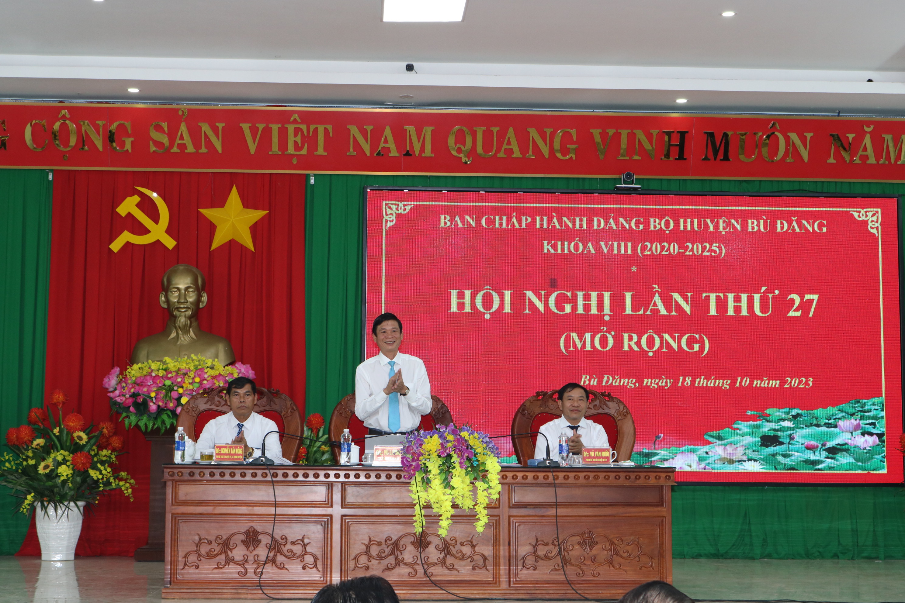 Trong 9 tháng đầu năm 2023, Thường trực và Ban Thường vụ huyện ủy Bù Đăng đã tập trung lãnh đạo, chỉ đạo toàn diện trên các lĩnh vực. Tình hình kinh tế - xã hội của huyện đạt được kết quả tích cực; giá trị sản xuất nông - lâm - thủy sản, công nghiệp - xây dựng, thương mại - dịch vụ ổn định: Tổng thu ngân sách Nhà nước là 194.572 triệu đồng, đạt 62,16% dự toán tỉnh giao, đạt 58,43% dự toán huyện giao. Tổng chi ngân sách là 687.728 triệu đồng, đạt 74,87% dự toán tỉnh giao, đạt 43,57% dự toán HĐND huyện thông qua. Lĩnh vực văn hóa, giáo dục, y tế, từng bước phát triển có 13/54 trường đạt chuẩn Quốc gia mức độ I, đạt 24,1%. Công tác xây dựng Đảng, xây dựng hệ thống chính trị được chú trọng: Toàn huyện có 58 cơ sở đảng trực thuộc với tổng số 4.174 đảng viên, đã kết nạp được 87 đảng viên, đạt 68,50% chỉ tiêu tỉnh giao và 64,44% chỉ tiêu của huyện. Quốc phòng, an ninh, chính trị, trật tự an toàn xã hội được giữ vững. Từ đó đã tạo được sự đồng thuận, phát huy sức mạnh tổng hợp trong Nhân dân.