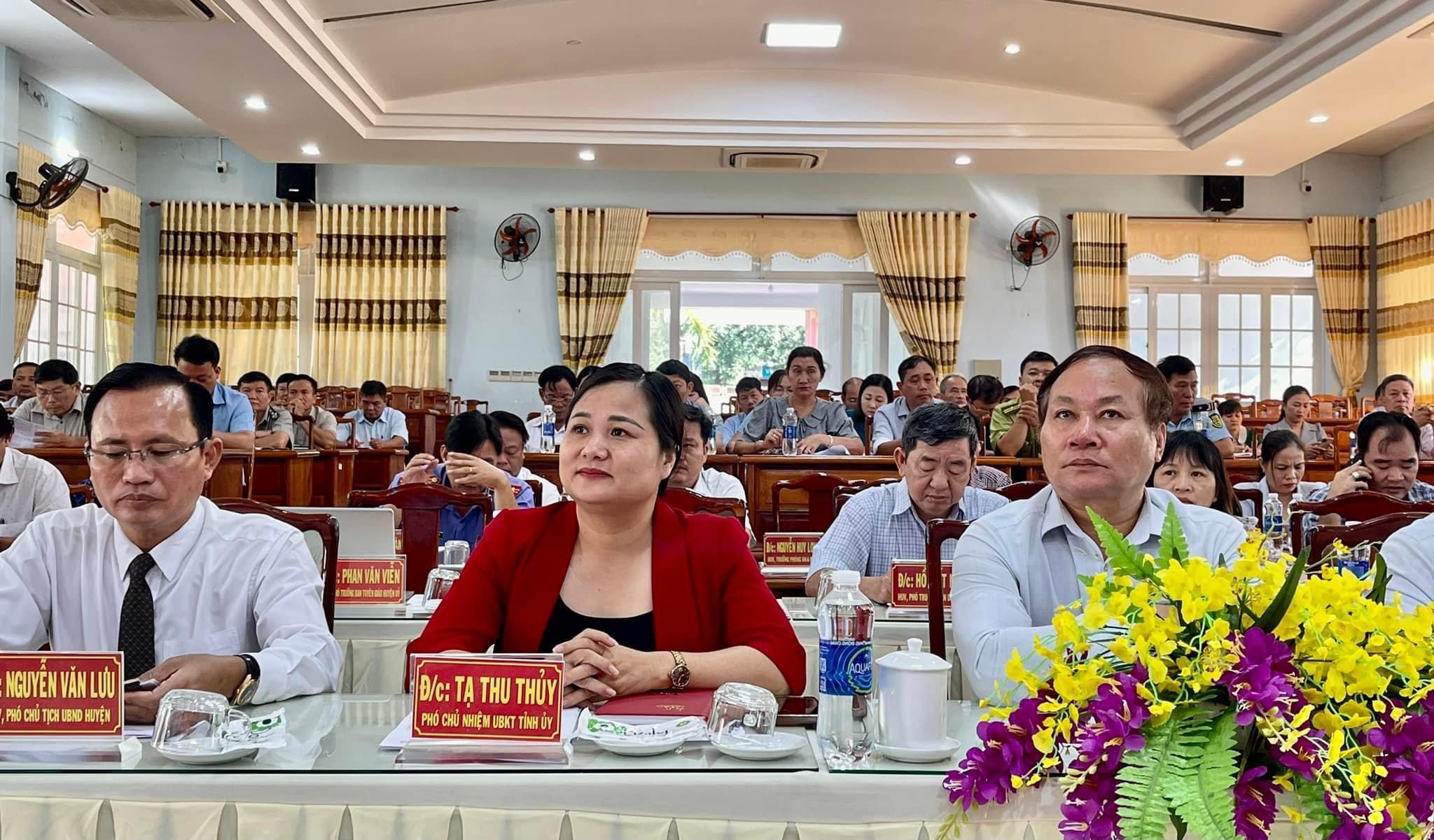 Tham dự Hội nghị có Phó chủ nhiệm UBKT Tỉnh ủy Tạ Thu Thủy; Phó Trưởng Ban dân vận Tỉnh ủy Trịnh Thanh Tuệ cùng các UVBTV, BCH đảng bộ huyện, lãnh đạo các chi, đảng bộ trực thuộc, thủ trưởng các cơ quan, ban ngành, đoàn thể huyện.